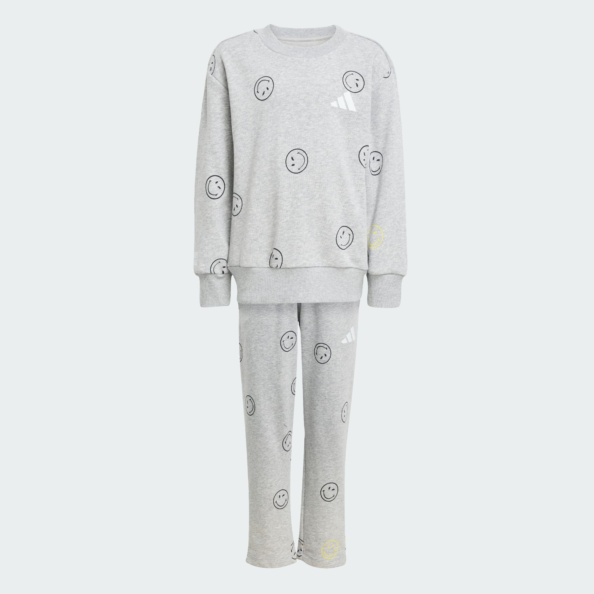 Designed with Smiley World, this kids' set from adidas brings happiness wherever they go. Made from soft French terry that keeps them cosy and comfortable, the set includes a crewneck sweatshirt and matching pants. Smiley face graphics add a pop of playfulness.