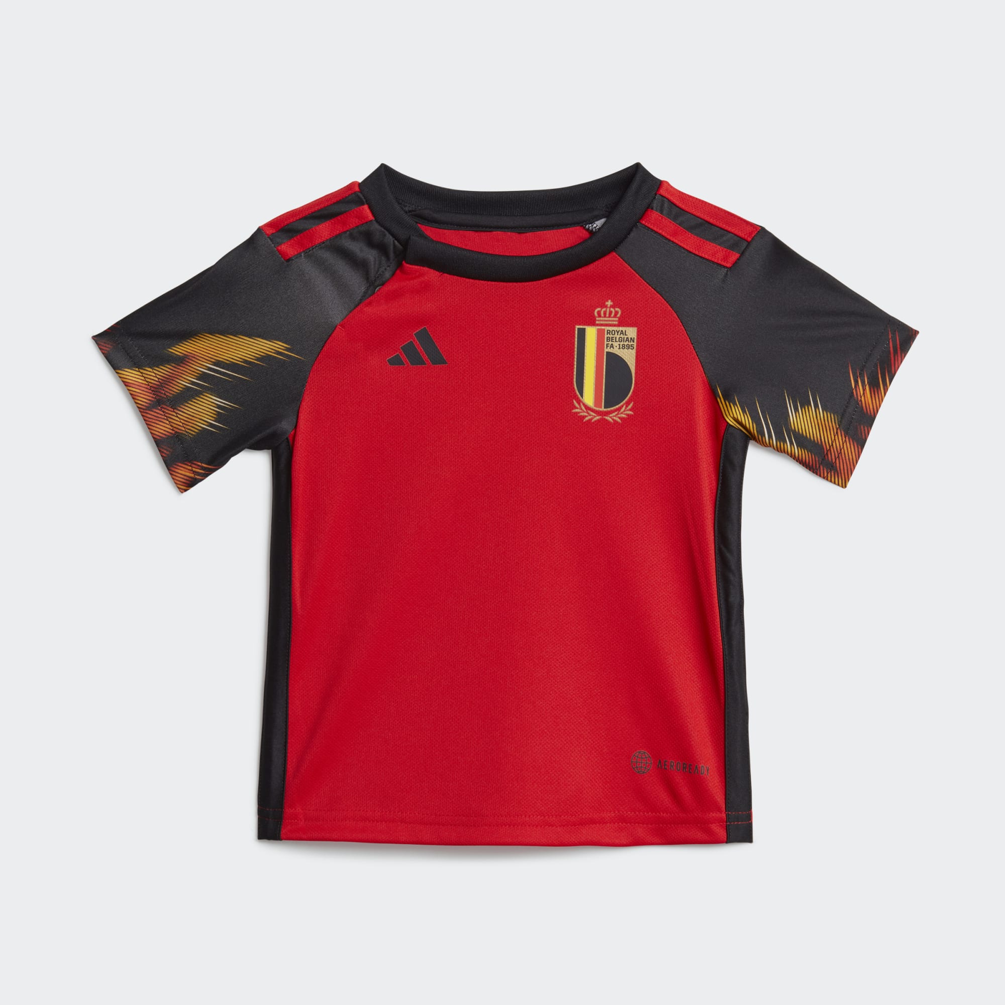 Miniwersja podstawowego zestawu reprezentacji Belgii wykonana z materiałów pochodzących z recyklingu.