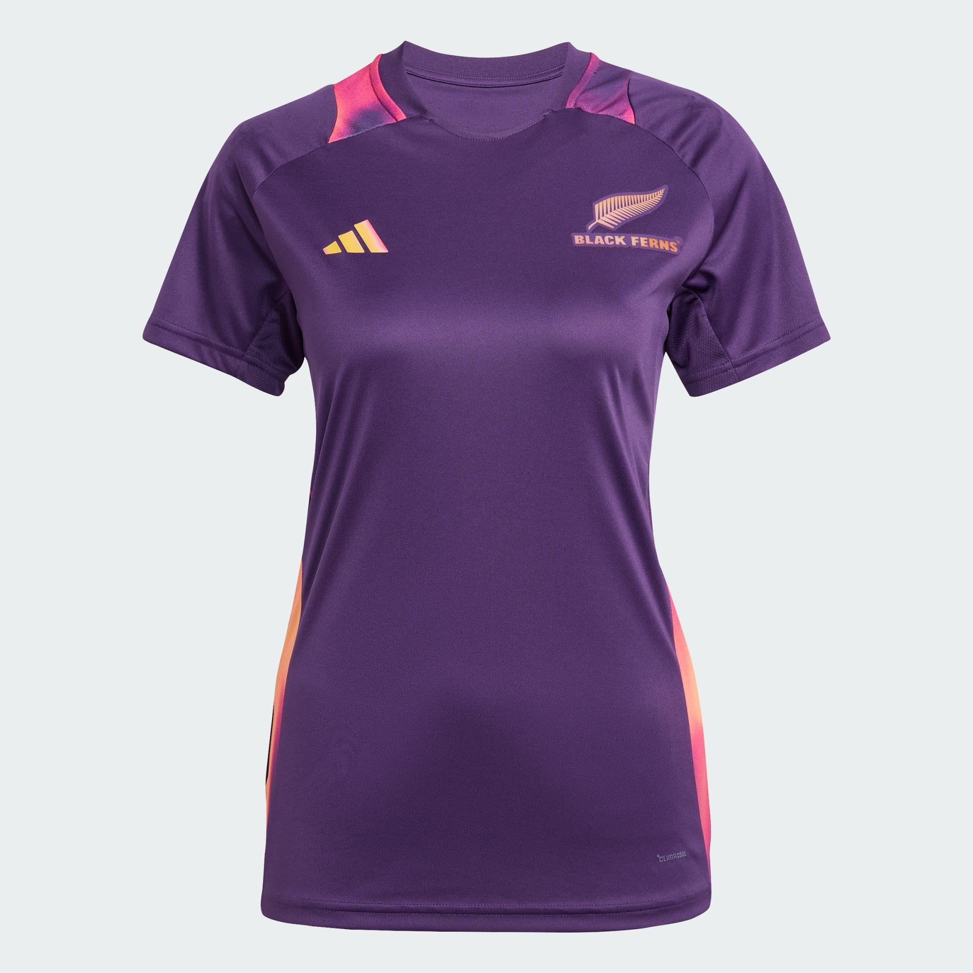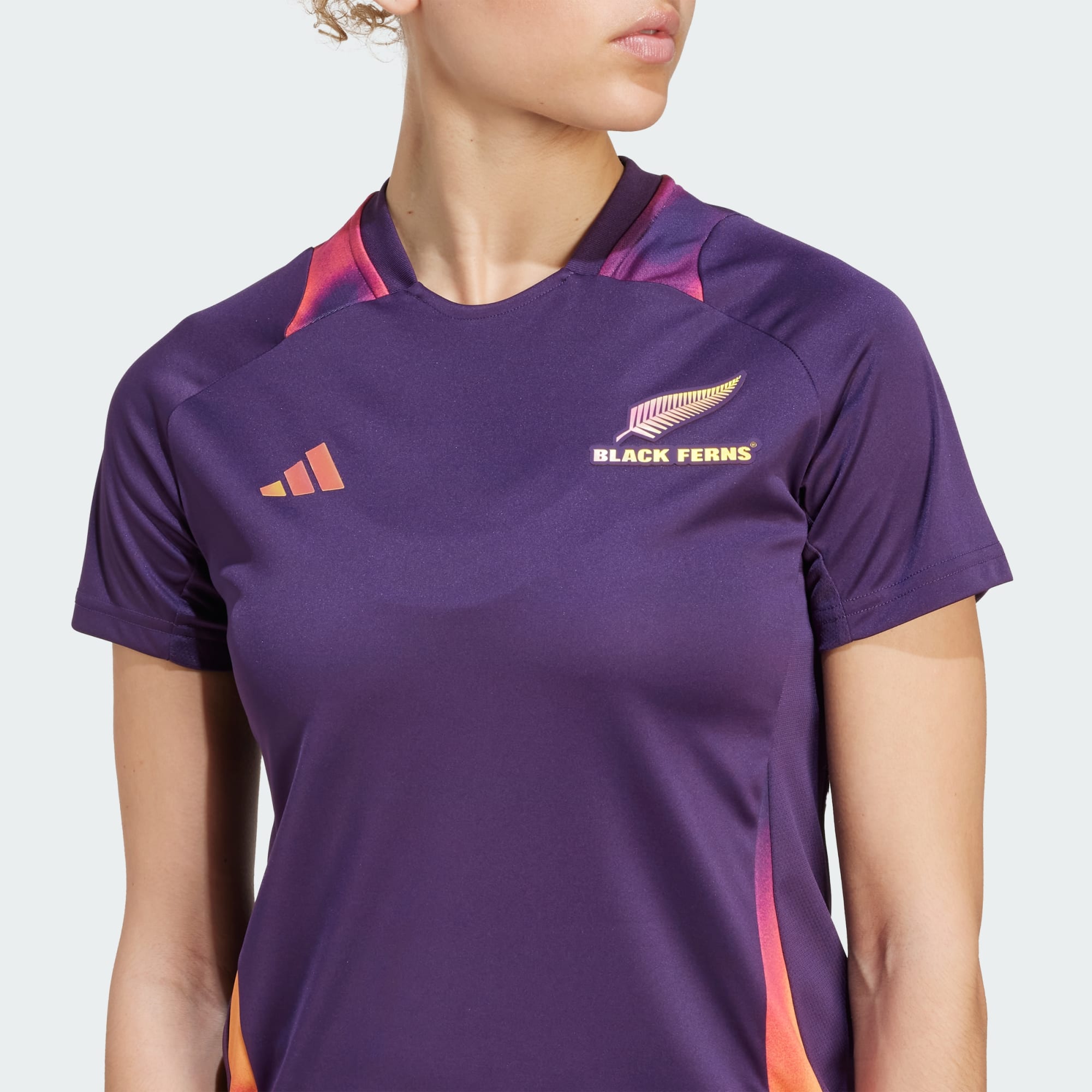 Let your skills shine when you hit the training ground. Flashing vibrant colours inspired by a New Zealand sunset, this adidas rugby tee is the one the Black Ferns squad wear as they prepare to challenge for their seventh world title in England. Lightweight interlock fabric allows you to focus on your game without distraction.