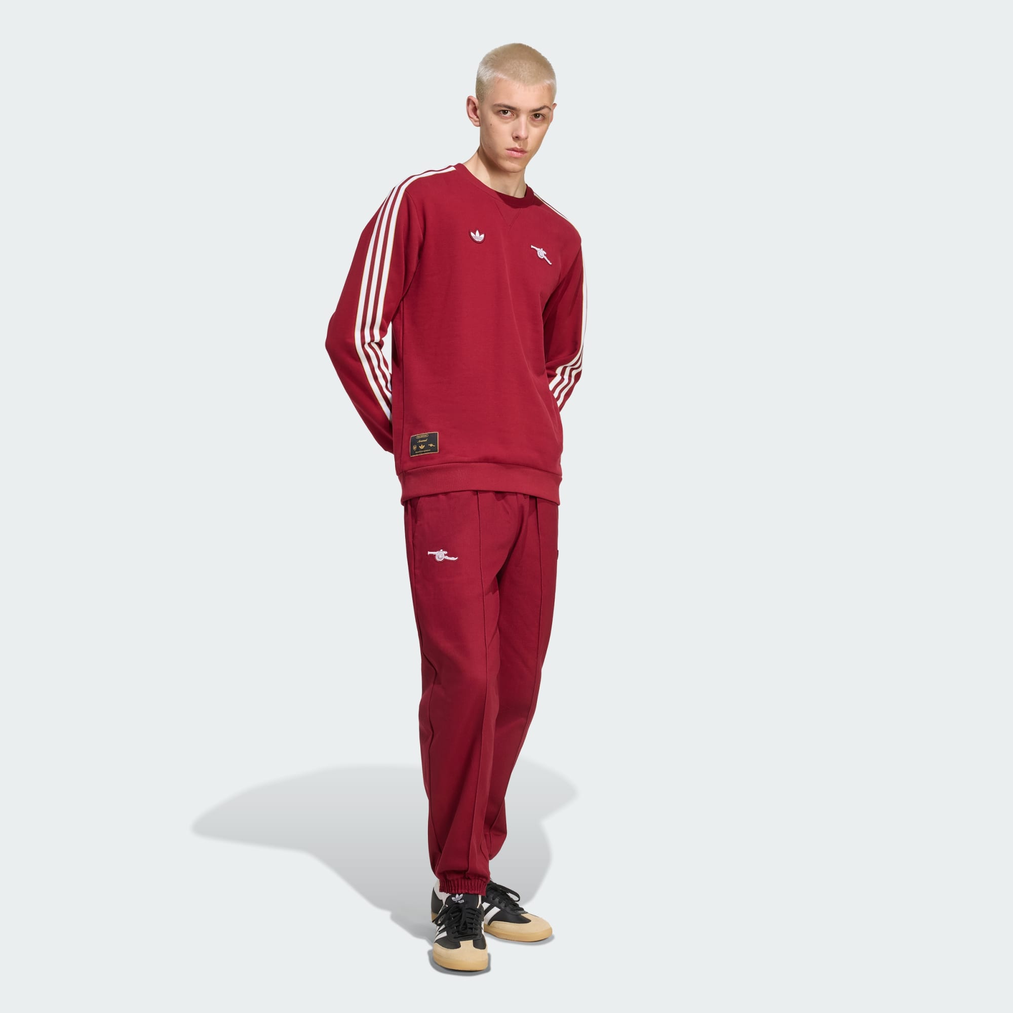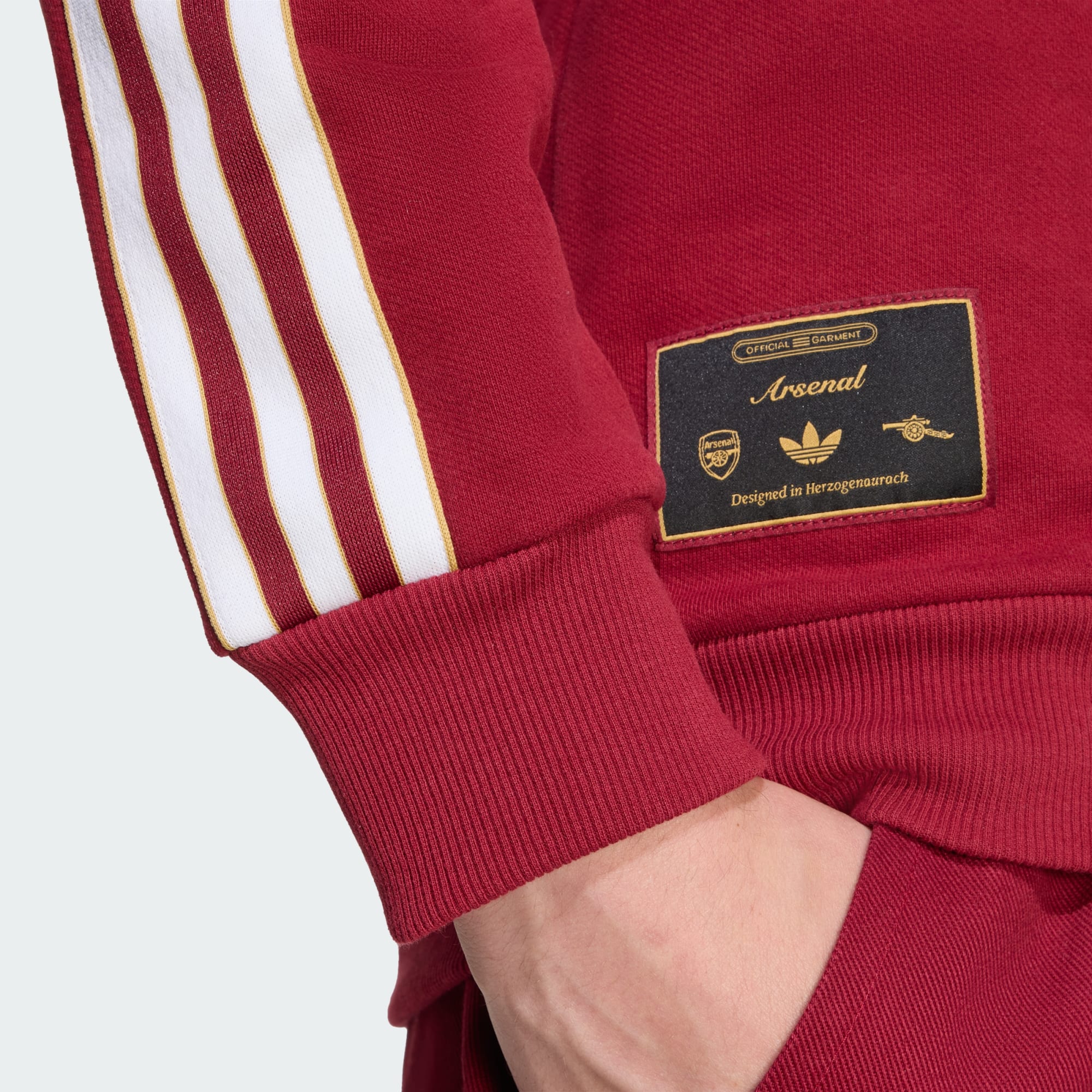 Ta bluza Arsenal od adidas, inspirowana piłkarską kulturą lat 80., pozwala wyrazić przywiązanie do klubu w swobodnym i wygodnym stylu. Wykonana z miękkiego francuskiego materiału frotté, bluza zatrzymuje ciepło dzięki kołnierzowi i mankietom ze ściągaczami. Obok klasycznego logo Trefoil na klatce piersiowej znajduje się naszywka z armatą, która jasno pokazuje klubowe przywiązanie.
