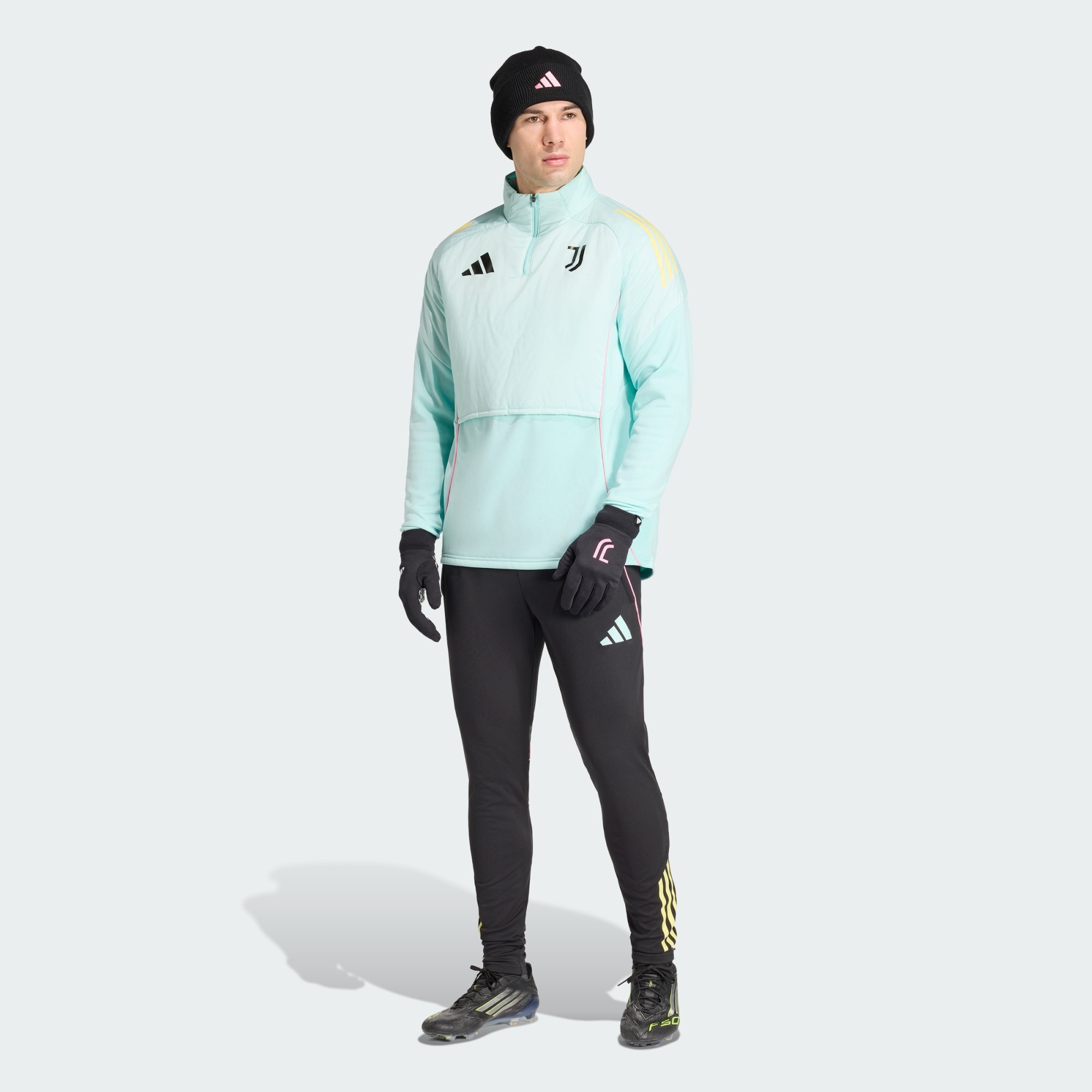 Ta bluza adidas, będąca częścią kolekcji odzieży treningowej, którą zawodnicy Juventusu zakładają przed meczami ligowymi, została stworzona z myślą o sesjach w niskich temperaturach. Jest zaprojektowana tak, aby zapewnić ciepło bez obciążania. Ma strategicznie rozmieszczone ocieplenie, chowaną kominiarkę, a także składane osłony na dłonie. Naniesione techniką termotransferu godło klubu na klatce piersiowej pokazuje wsparcie dla drużyny piłkarskiej.