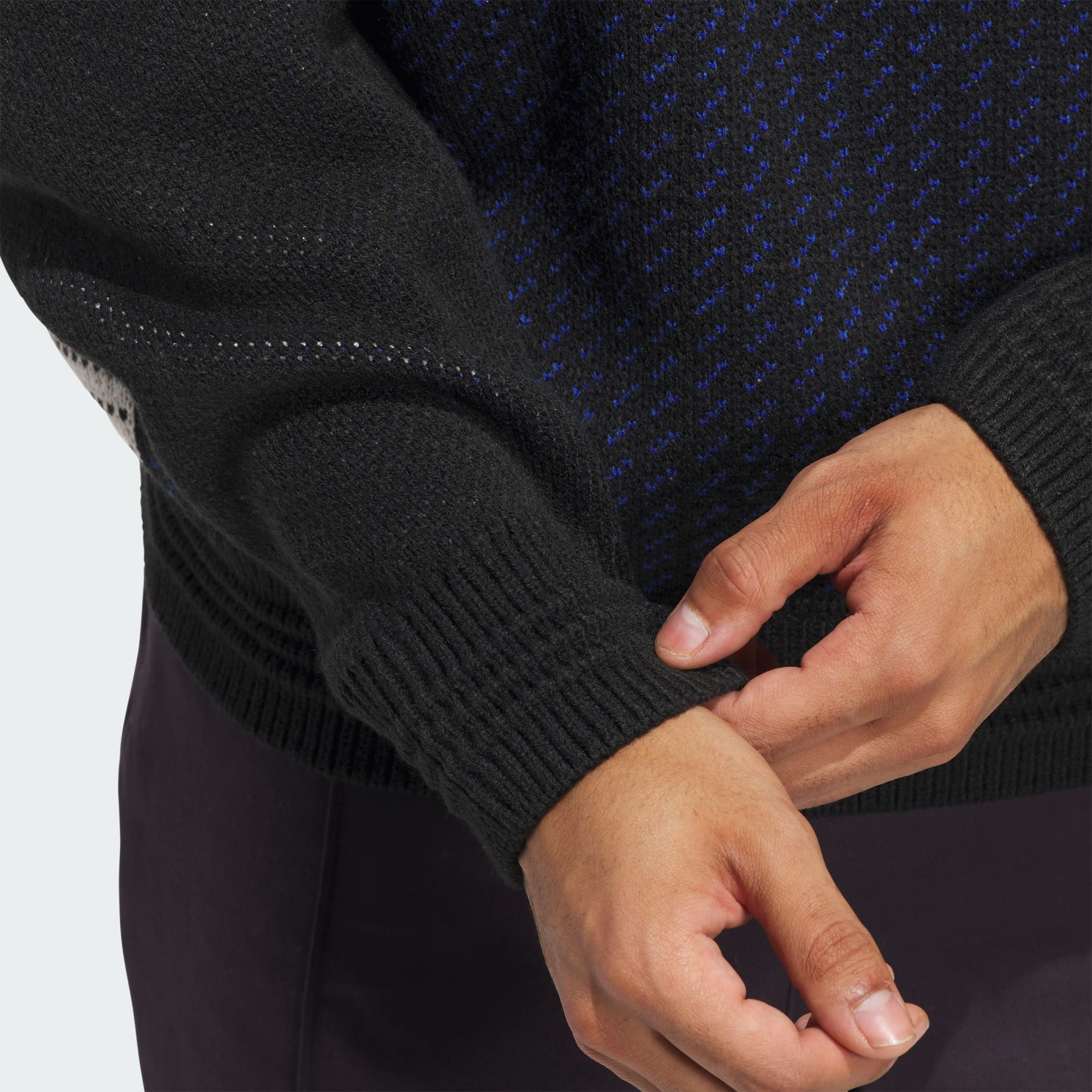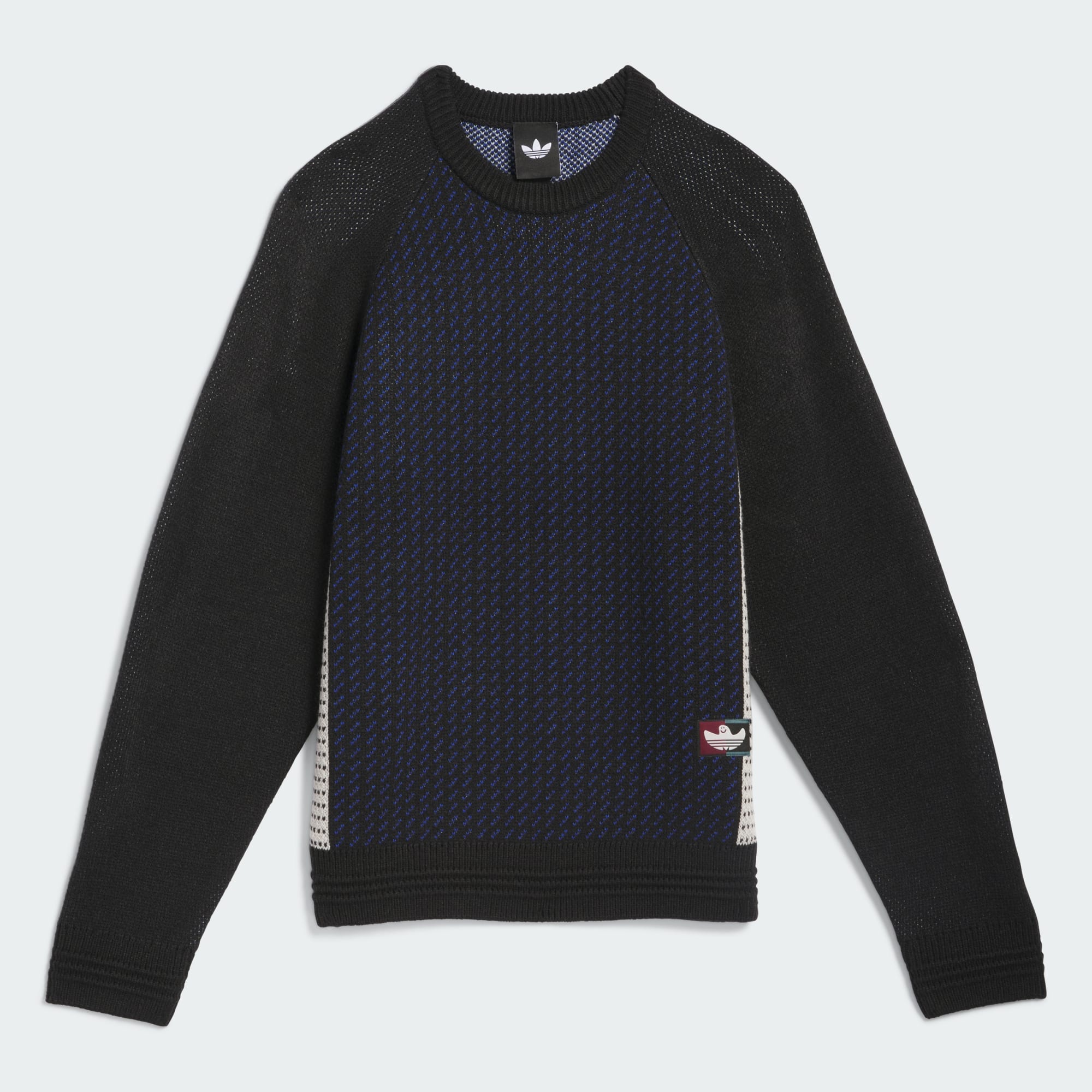 Bluza Shmoofoil Fully Fashioned Crewneck z elementami wzoru i autorską grafiką stworzoną przez ikonę adidas Skateboarding Marka Gonzalesa łączy nieoczekiwany styl z luźnym, nowoczesnym krojem i jest ucieleśnieniem skateboardingu. Bluza została wykonana przy użyciu UNITEFIT – systemu dopasowania stworzonego z myślą o spektrum rozmiarów, płci i sylwetek.