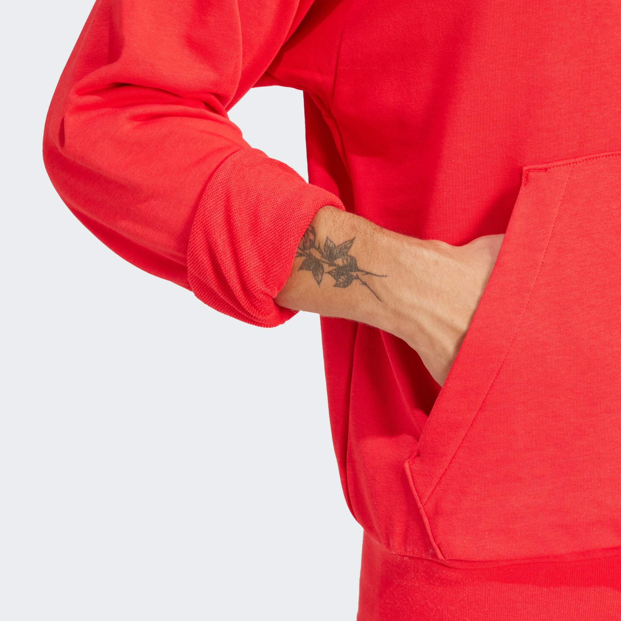 Prosta, klasyczna bluza z kapturem wykonana częściowo z mieszanki materiałów pochodzących z recyklingu i pozyskanych z odnawialnych źródeł.