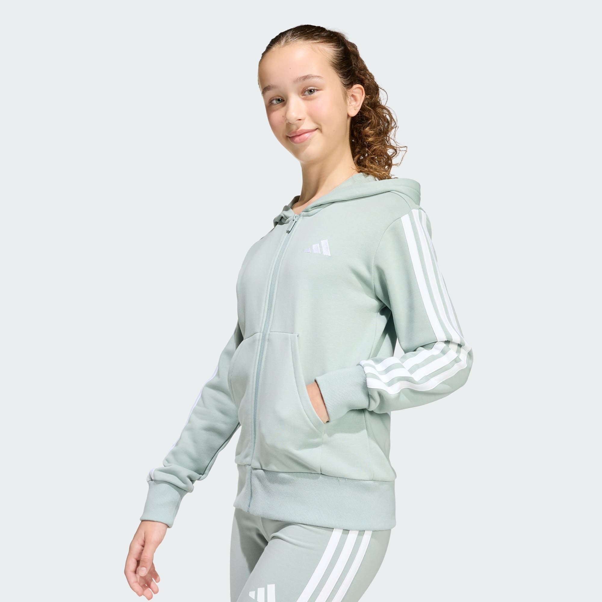 Bluza z kapturem Essentials Full Zip zapewnia codzienny komfort. Standardowy krój zapewnia pełną swobodę ruchów, czyniąc ją świetnym wyborem na aktywne dni, niezależnie od tego, czy to dzień w szkole, czy zabawa z przyjaciółmi. Wykonana z materiału frotté, jest miękka i przyjemna w dotyku. Suwak na całej długości ułatwia zakładanie, a dopasowany kaptur zapewnia ciepło w chłodne poranki. Kultowe 3 paski adidas i wyszywany napis sprawiają, że to element łączący styl i dziedzictwo. Nadaje się do noszenia warstwowego, została stworzona z myślą o prostocie i wygodzie. Bluza z kapturem jest gotowa na każde wyzwanie dnia dzięki przemyślanemu projektowi i trwałym materiałom. Łączy styl i funkcjonalność, stając się niezawodnym elementem codziennych aktywności.