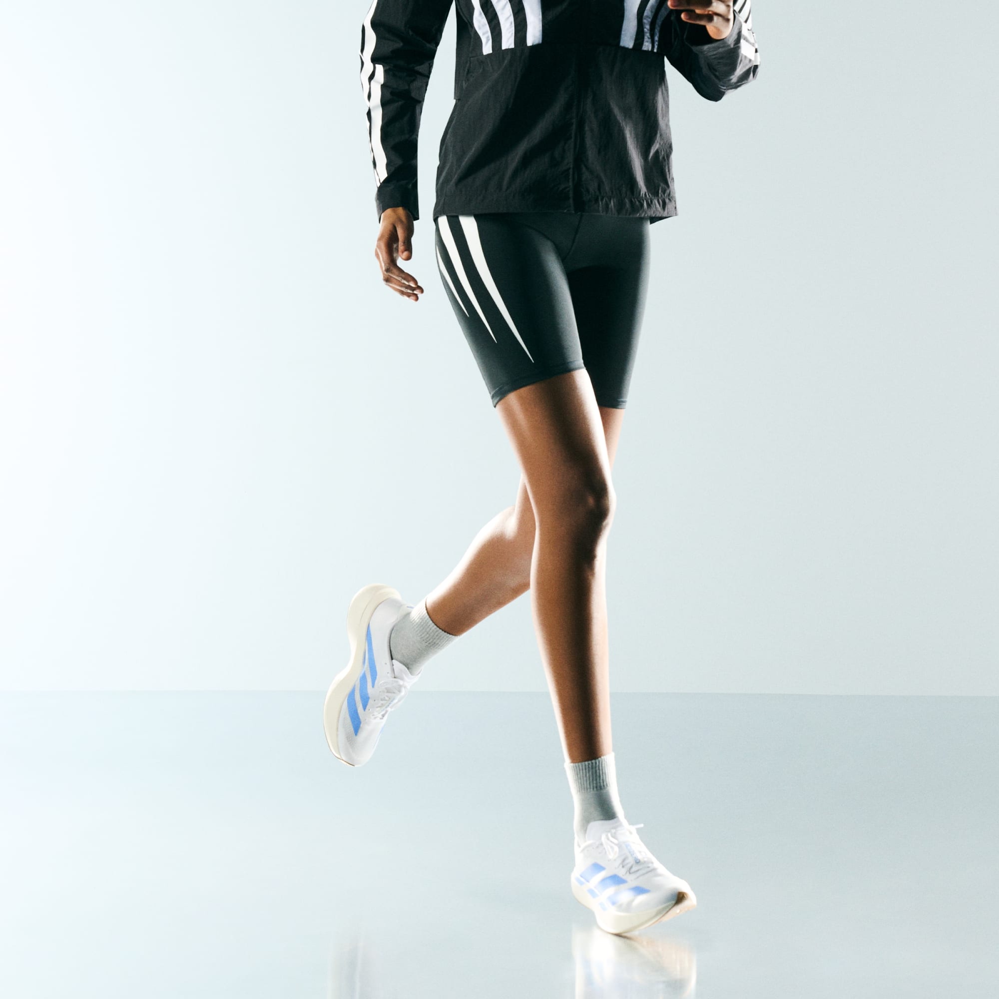 Połączenie nowych technologii biegowych linii Adizero i nowatorskiej estetyki zapewnia poczucie szybkości podczas każdego biegu.