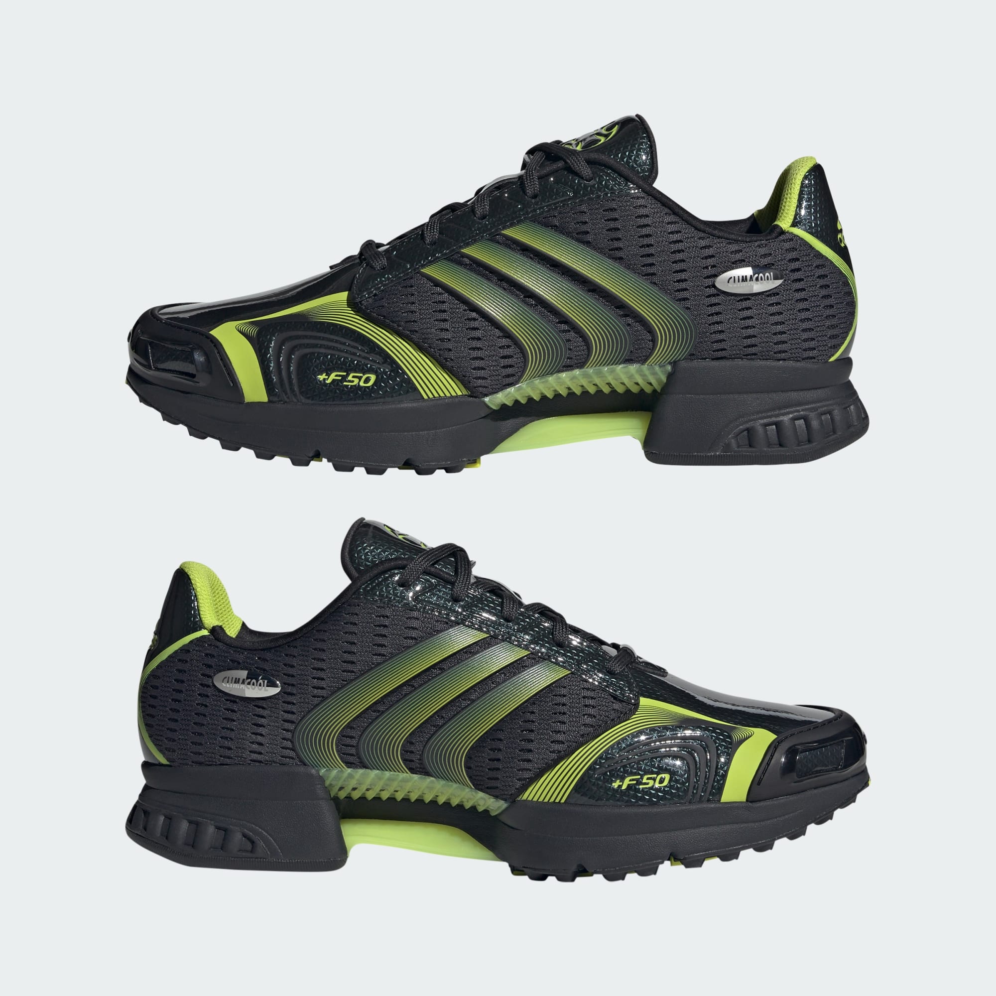 Cholewka z przewiewnej siateczki o specjalnej konstrukcji w połączeniu z paskami TPU F50-Tunit i błyszczącymi syntetycznymi nakładkami zapewnia elegancki wygląd. Oddychająca podeszwa środkowa Climacool z trzpieniem TPU na całej długości zwiększa komfort.
