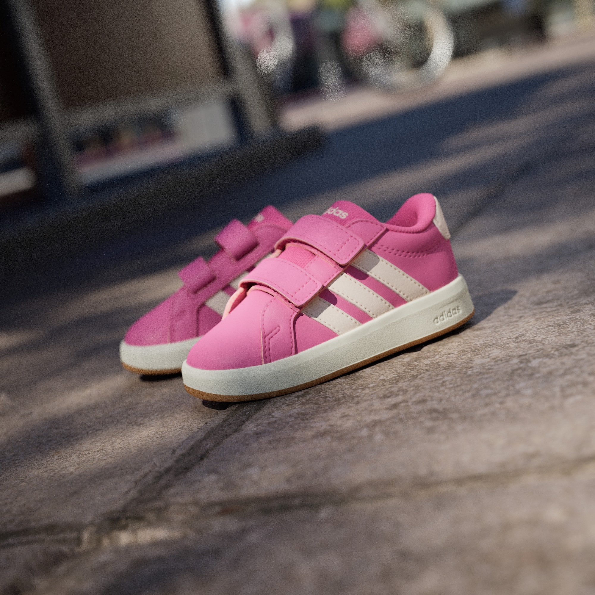 Klasyczne buty sportowe adidas z kolekcji Grand Court 3.0 dla niemowląt, zaprojektowane na nowo z myślą o małych stopach, to ponadczasowy styl kortowy dla najmłodszych miłośników przygód. Mają regulowane paski na rzepy, które ułatwiają rodzicom zapinanie butów.