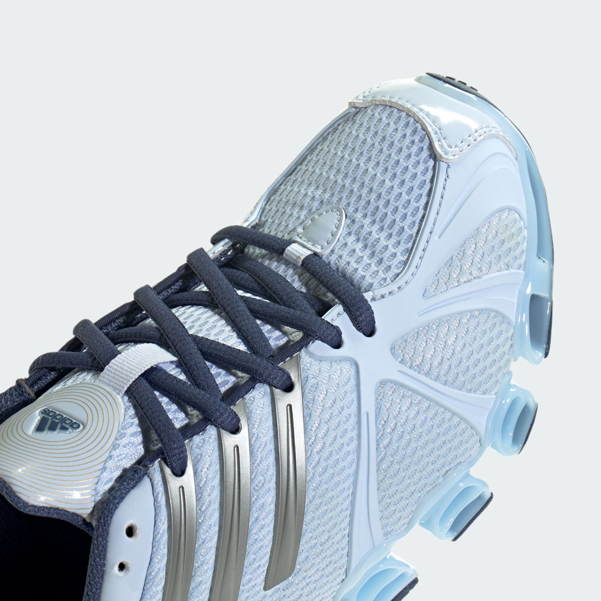 Buty Megaride Ghostride, inspirowane oryginalnym projektem adidas Megaride z 2006 roku, unowocześniają charakterystyczną sylwetkę biegową Y2K. Detale ukierunkowane na wydajność, takie jak aerodynamiczna siateczkowa cholewka, pozostają wierne dziedzictwu, a metaliczne paski z matowym wykończeniem odzwierciedlają jego estetykę.