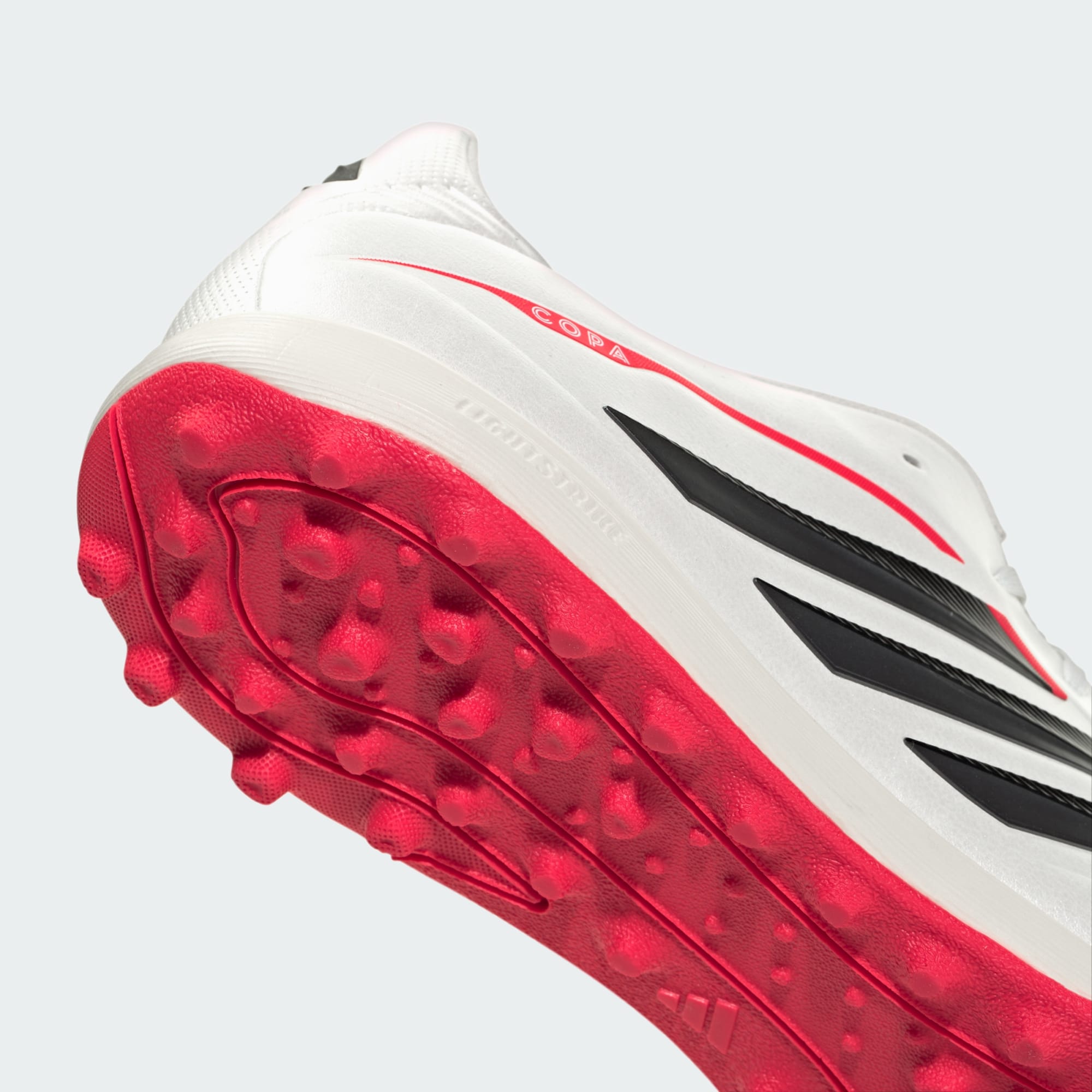 Przedstawiamy buty piłkarskie na murawę Copa Pure IV League. Stworzone dla tych, którzy żyją i oddychają piłką nożną, łączą dziedzictwo z innowacją, aby wnieść odrobinę klasy do gry. Cholewka Fusionfeel ze strategicznie rozmieszczoną wyściółką zapewnia miękkość i wygodę, bez kompromisów w zakresie czucia piłki. Haptyczne nadruki 3D zapewniają niezawodną przyczepność do piłki, a gumowa podeszwa zewnętrzna gwarantuje skuteczną przyczepność na nawierzchniach z krótkimi włóknami syntetycznymi. Lekka podeszwa środkowa EVA zapewnia amortyzację i elastyczność, a wyściełany pływający język z warstwą pianki pomaga zmniejszyć nacisk i perforacje dla dodatkowej oddychalności. Dopełnieniem butów jest miękka i wyściełana pięta, która zapewnia dodatkowy komfort, a logo adidas dodaje wykończenia. Jakość i wydajność adidas są widoczne w butach piłkarskich przeznaczonych na boiska ze sztuczną nawierzchnią. Niezależnie od tego, czy trenujesz z drużyną, czy grasz w meczu ligowym, ciesz się wygodą i stylem przy każdym kroku.