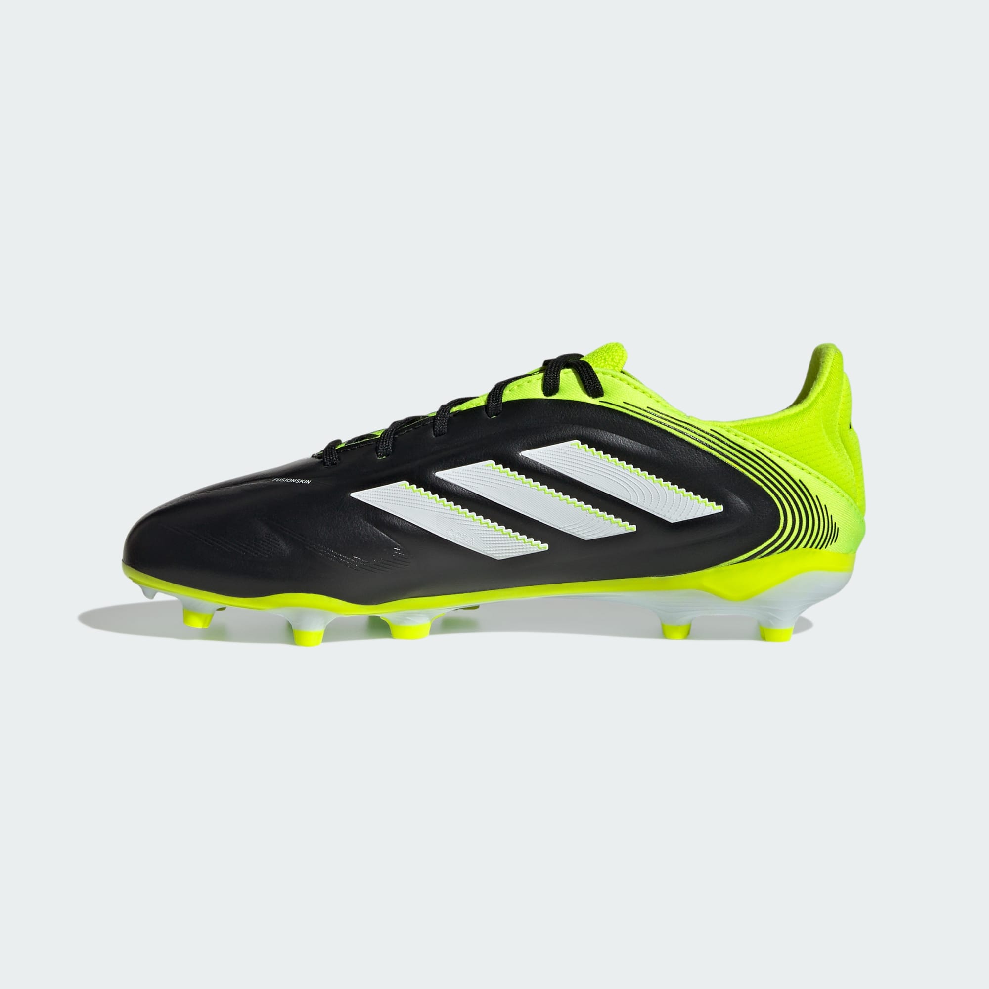 Płynny kontakt z piłką przez cały czas. Precyzyjne podanie za każdym razem. Pokaż doskonałe umiejętności podczas każdego meczu w butach piłkarskich Copa Pure 3, które zapewniają płynny kontakt z piłką przez cały czas. Te młodzieżowe buty piłkarskie Elite mają język adidas PRIMEKNIT i wyściełany zapiętek, dzięki czemu zapewniają idealne dopasowanie. Skórzana cholewka Fusionskin pomaga utrzymać piłkę nożną blisko, a podeszwa zewnętrzna Comfortplate pozwala wyróżnić się doskonałą grą na wielu nawierzchniach.