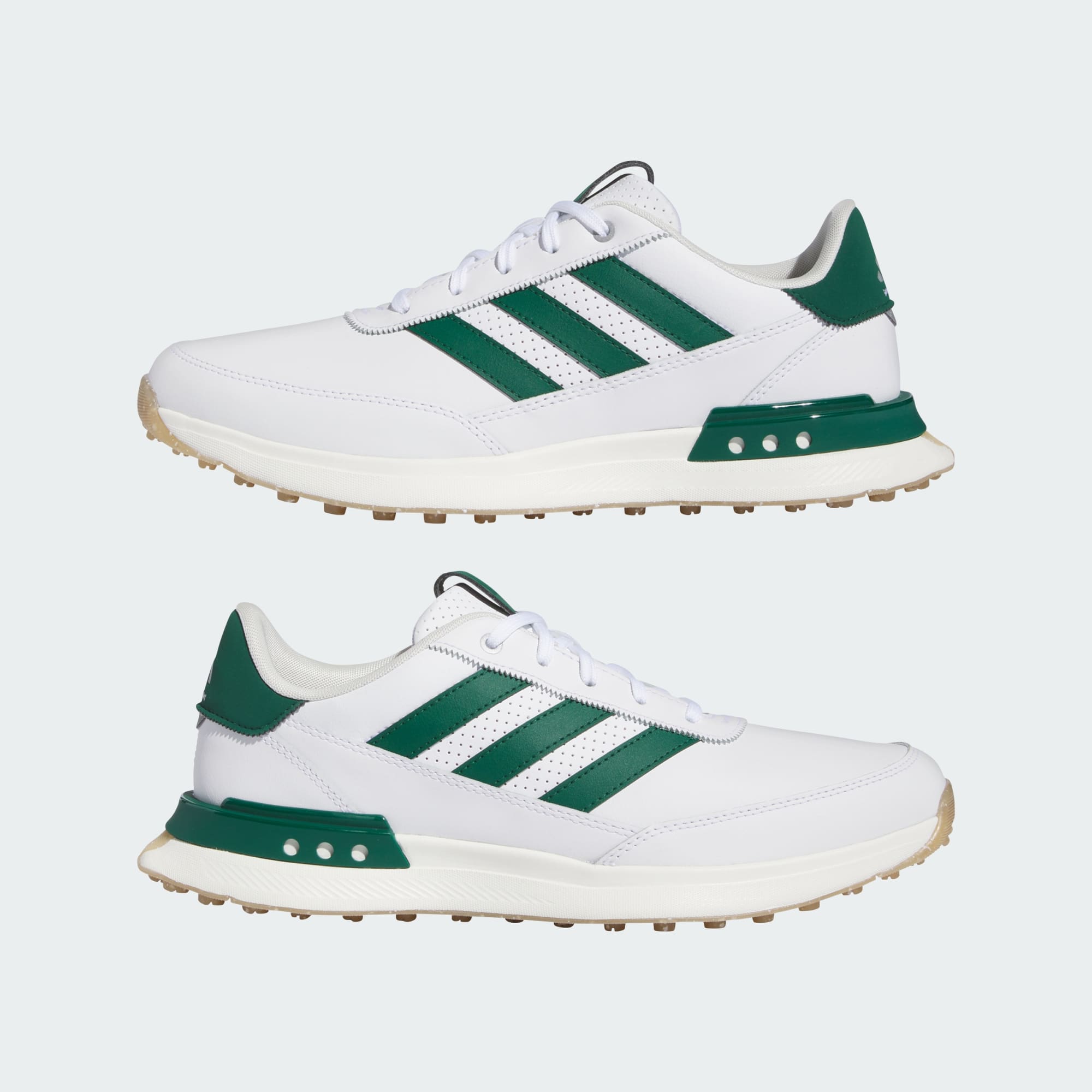 Załóż je i ciesz się całodziennym komfortem podczas spotkań towarzyskich i nie tylko. Buty do golfa bez kolców, inspirowane lekkim, sprężystym designem butów do biegania, zapewniają solidną podstawę i styl przez cały dzień. Wodoodporna, skórzana cholewka i ochronna osłona palców zapewniają stopom suchy komfort na wilgotnej trawie, a podeszwa zewnętrzna Adiwear bez kolców i wspierająca pięta zapewniają stabilizację i przyczepność, gwarantując solidną podstawę i ułatwiając przejście poza pole golfowe.