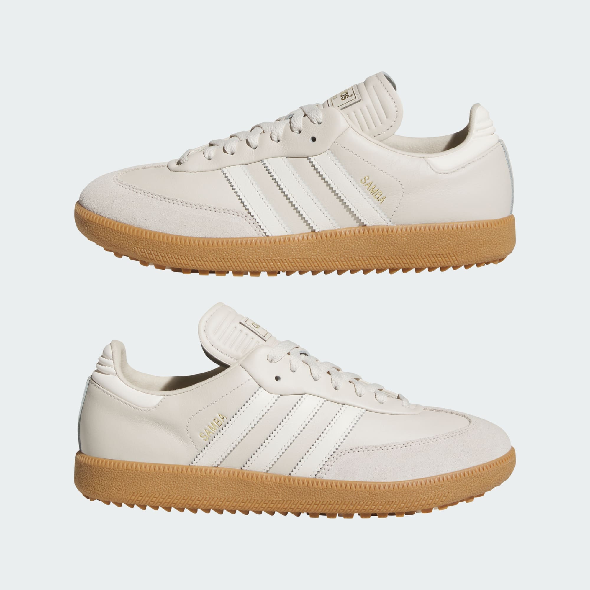 Graj kolejne rundy, ciesząc się stylem i wygodą dzięki butom adidas Samba Spikeless do gry w golfa. Od zamszowych detali na skórzanej cholewce po kultową osłonę palców w kształcie litery T te buty zachowują tradycyjny look oryginałów. Gotowe na pole golfowe detale, takie jak amortyzowana podeszwa środkowa i gumowa podeszwa zewnętrzna, zaprojektowane z myślą o pewnej przyczepności na polu golfowym i nie tylko, zapewnią wygodę od pierwszego do ostatniego dołka, a po zakończonej rozgrywce pozwolą stylowo przejść do klubu.