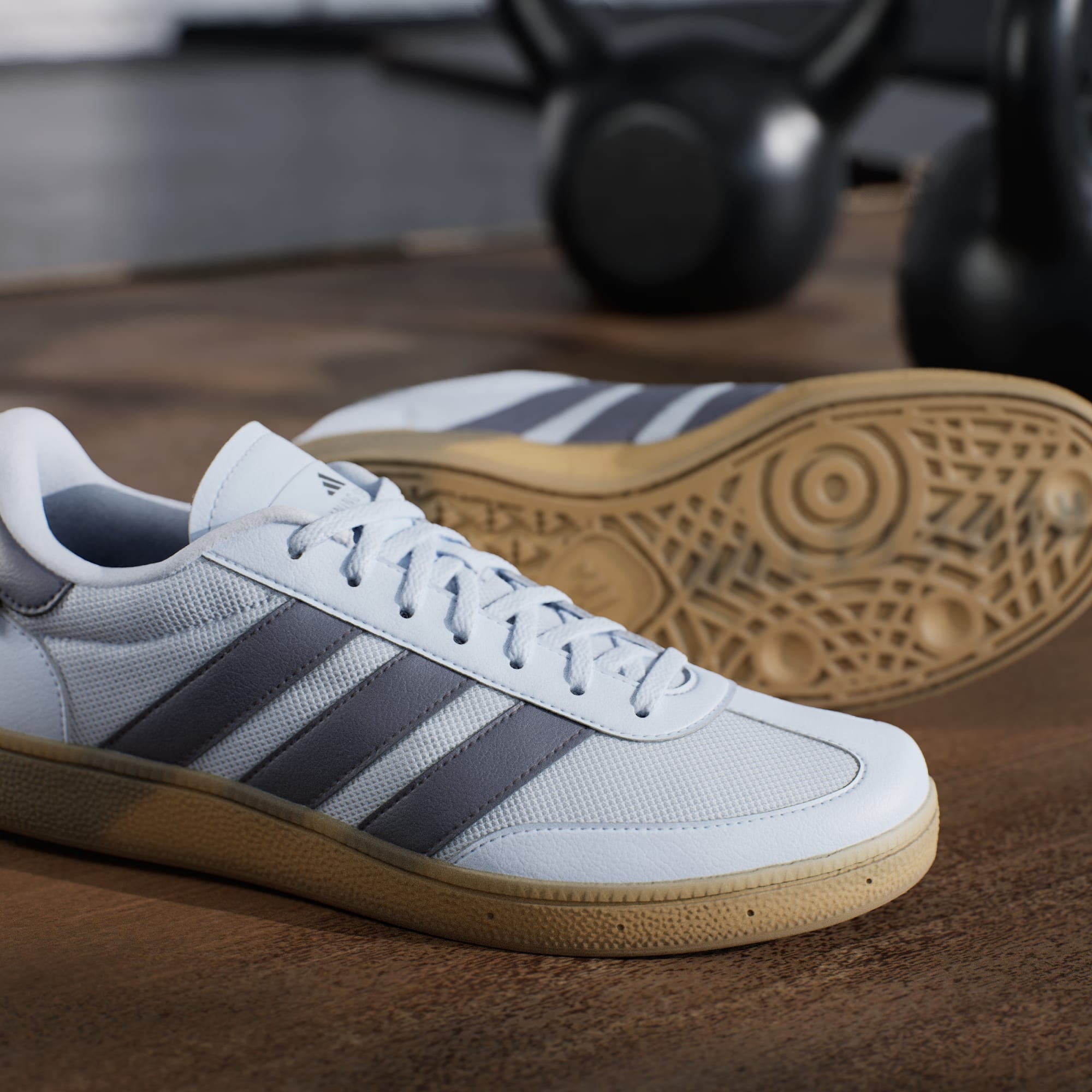 Te buty treningowe adidas płynnie przechodzą z siłowni na ulicę. Podeszwa środkowa o zróżnicowanej gęstości z pianką REPETITOR zapewnia sztywniejsze wsparcie w pięcie dla większej stabilizacji podczas podnoszenia ciężarów. Nylonowa cholewka Cordura® oferuje elastyczność i trwałość. Podeszwa zewnętrzna Traxion™ zapewnia przyczepność podczas dynamicznych zwrotów i sprintów.