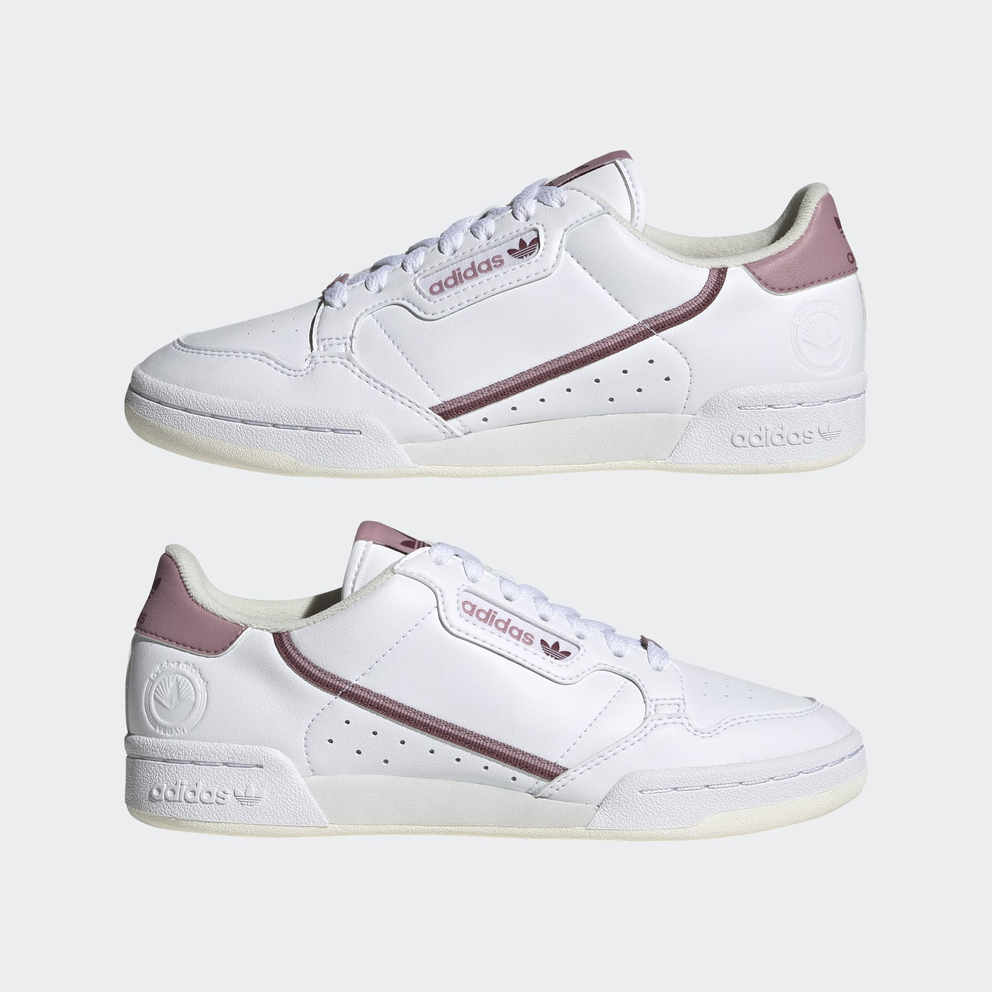 Żyj według swoich zasad i wyglądaj świetnie. Zachowaj wierność swoim przekonaniom, nosząc buty adidas Continental 80 Vegan. Spójrz na kolorowe akcenty na taśmie w stylu retro, które przewijają się od naszywki na pięcie poprzez okienko z logo do metki na języku. Ozdoba na sznurowadłach stanowi dopełniający, fantazyjny akcent. Aby ograniczyć zużycie nowo produkowanych materiałów, dbamy o to, aby w naszych wegańskich zamiennikach znajdowało się co najmniej 25% materiałów pochodzących z recyklingu.