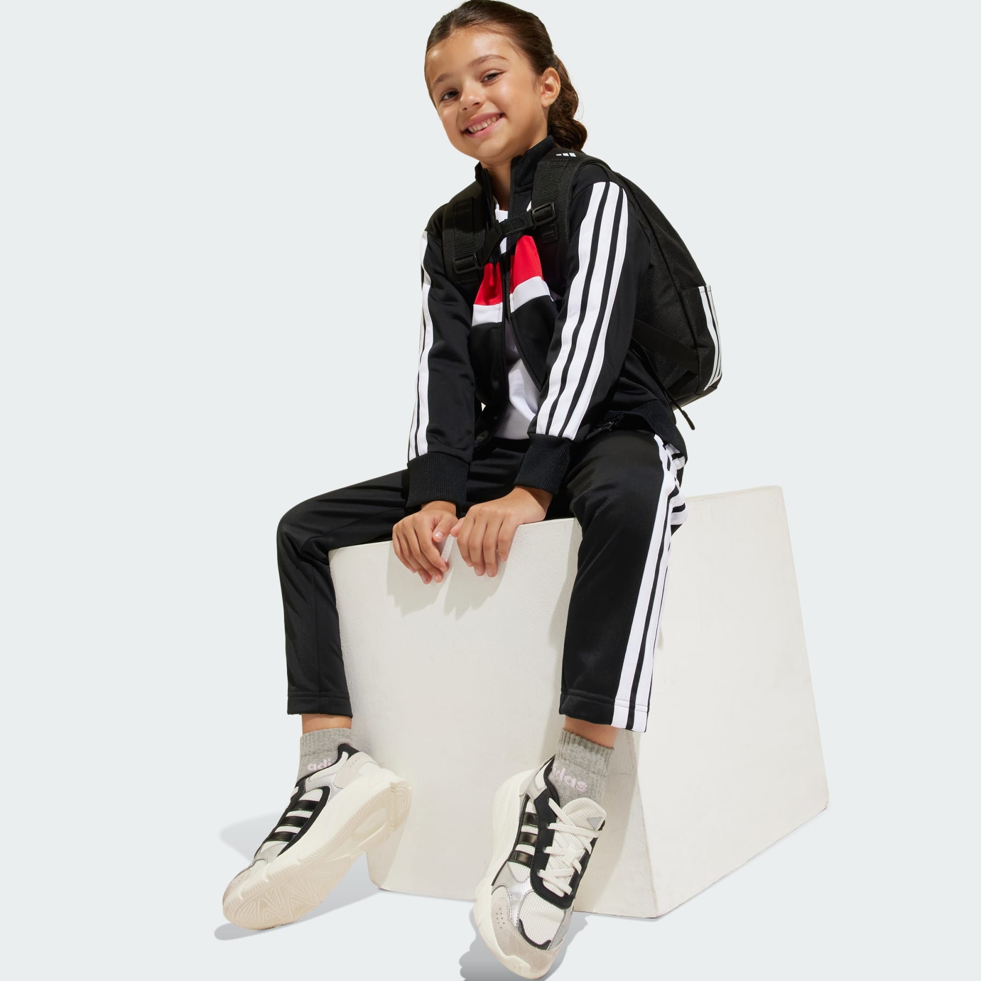 Odprowadzający pot dres z technologią CLIMACOOL, która zapewnia dzieciom przewiewny, suchy komfort i gotowość do każdej zabawy.