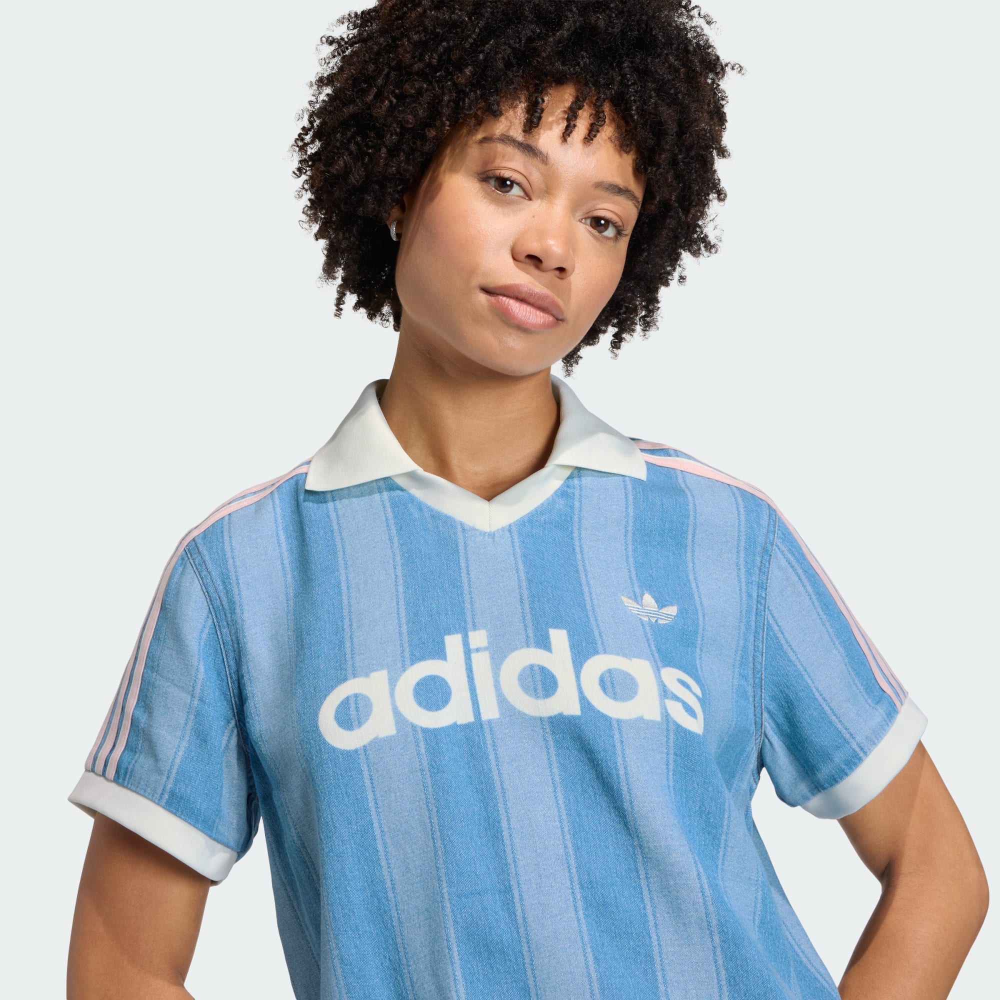 Dżinsowa koszulka piłkarska stanowi odważne połączenie klasycznego sportu z nowoczesnym stylem. Projekt inspirowany kultowymi momentami piłkarskimi lat 90. i początku wieku łączy sylwetki lifestylowe z subtelnymi detalami, takimi jak koronkowe akcenty. Luźny krój zapewnia komfort i swobodę i sprawdza się zarówno na co dzień, jak i podczas spotkań towarzyskich. Struktura materiału oraz jego trwałość nadają modelowi wyrazisty charakter. Dekolt w kształcie litery V dodaje ponadczasowego wykończenia. Branding adidas Originals podkreśla autentyczność i nawiązuje do klasycznej kultury sportowej. Model celebruje indywidualność oraz pasję do piłki nożnej. Świetny styl idzie w nim w parze z dziedzictwem gry.