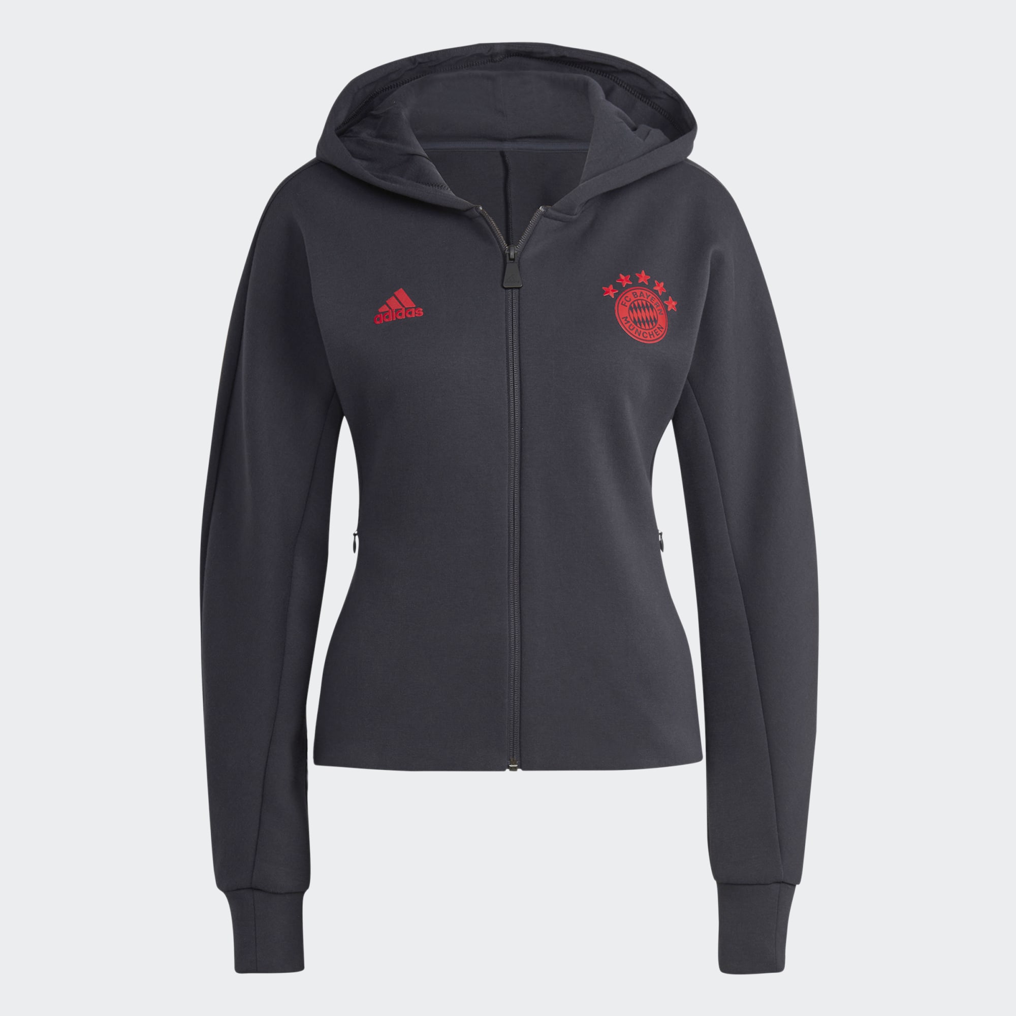 W wieczór najważniejszych piłkarskich rozgrywek, współpraca jest najważniejsza. Bluza reprezentacyjna adidas z kapturem, jaką zawodnicy Bayernu Monachium noszą podczas prezentacji przed meczem, zapewni Ci komfort dzięki miękkiej dzianinie i kapturowi z podszewką. W kieszeniach na suwak bezpiecznie przechowasz karty i klucze. Naniesione termotransferem godło drużyny podkreśla Twoją lojalność.