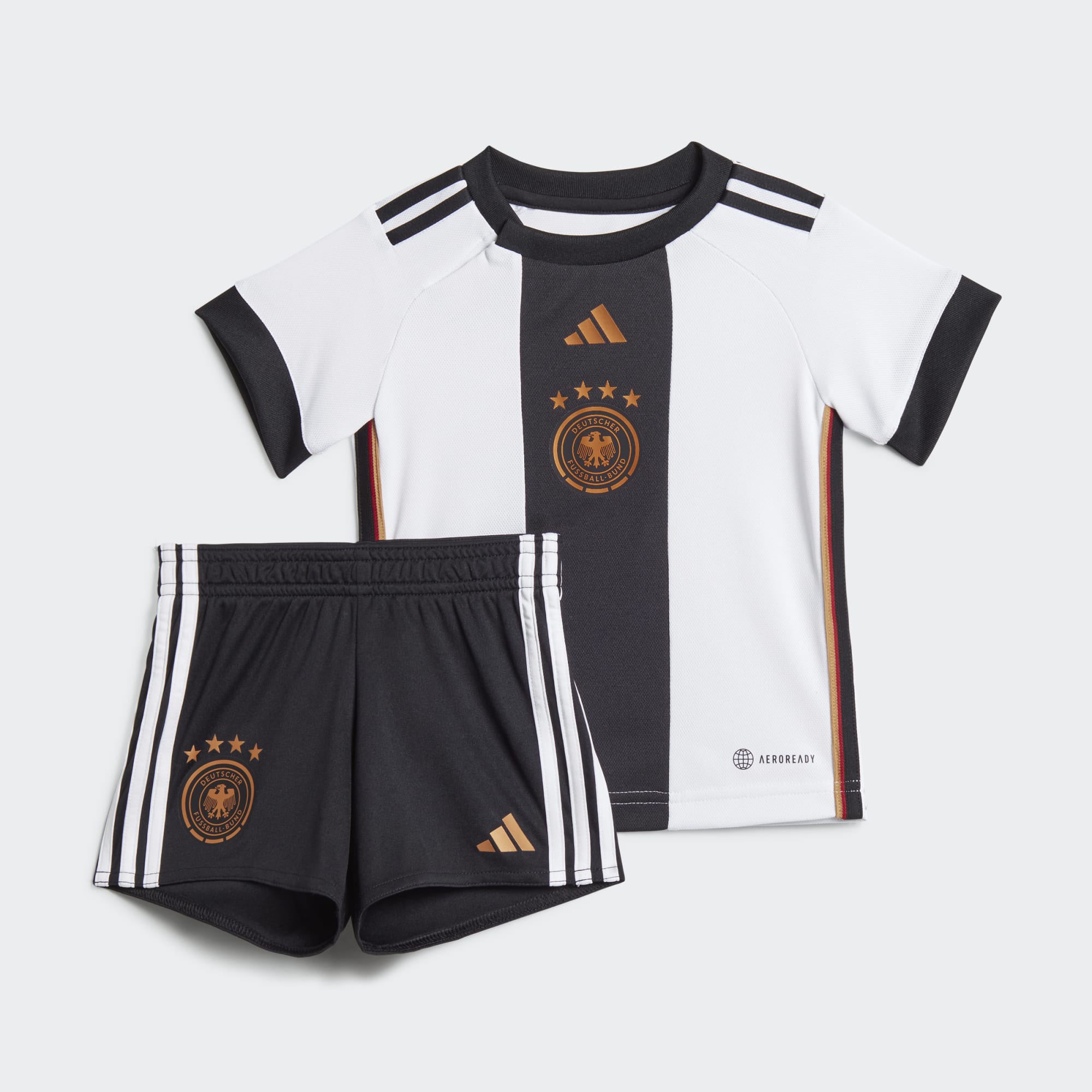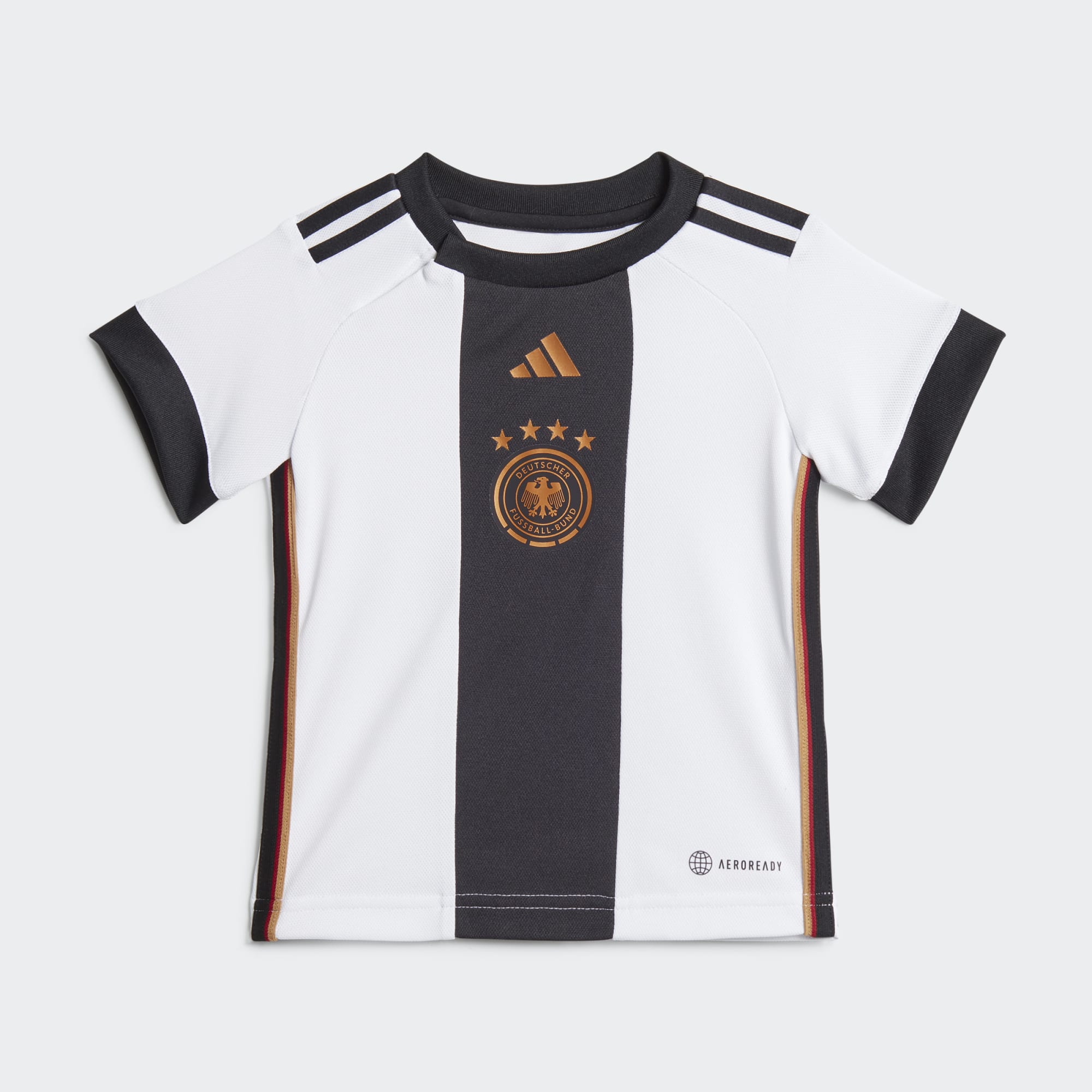 Zestaw podstawowy reprezentacji Niemiec dla małych kibiców, wykonany z materiałów pochodzących z recyklingu.