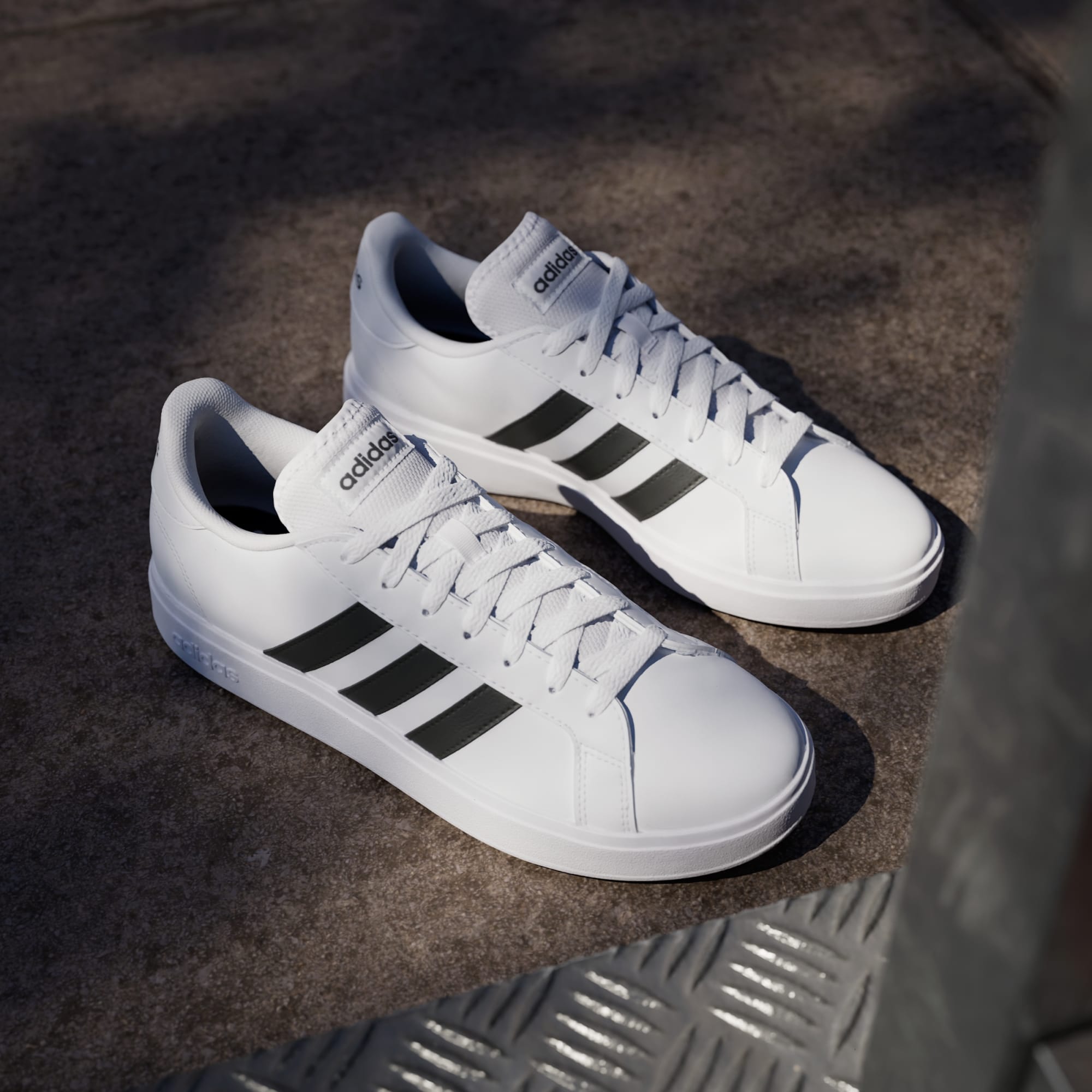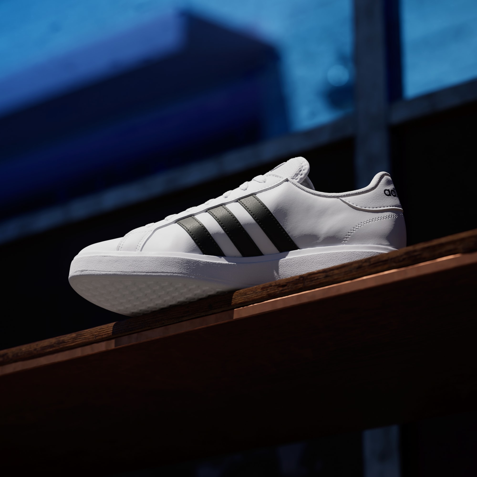 Najwyższa pora, by uzupełnić swoją kolekcję butów retro (albo ją rozpocząć). Zacznijmy od tych butów Grand Court. Projektanci zmienili każdy element, dodając solidną podeszwę, która zapewnia przyczepność w najbardziej deszczowe dni. Oczywiście te buty pozostają wierne tradycji adidas. Gładka cholewka z syntetycznej skóry pokazuje wszystkim, że należysz do drużyny 3 pasków.