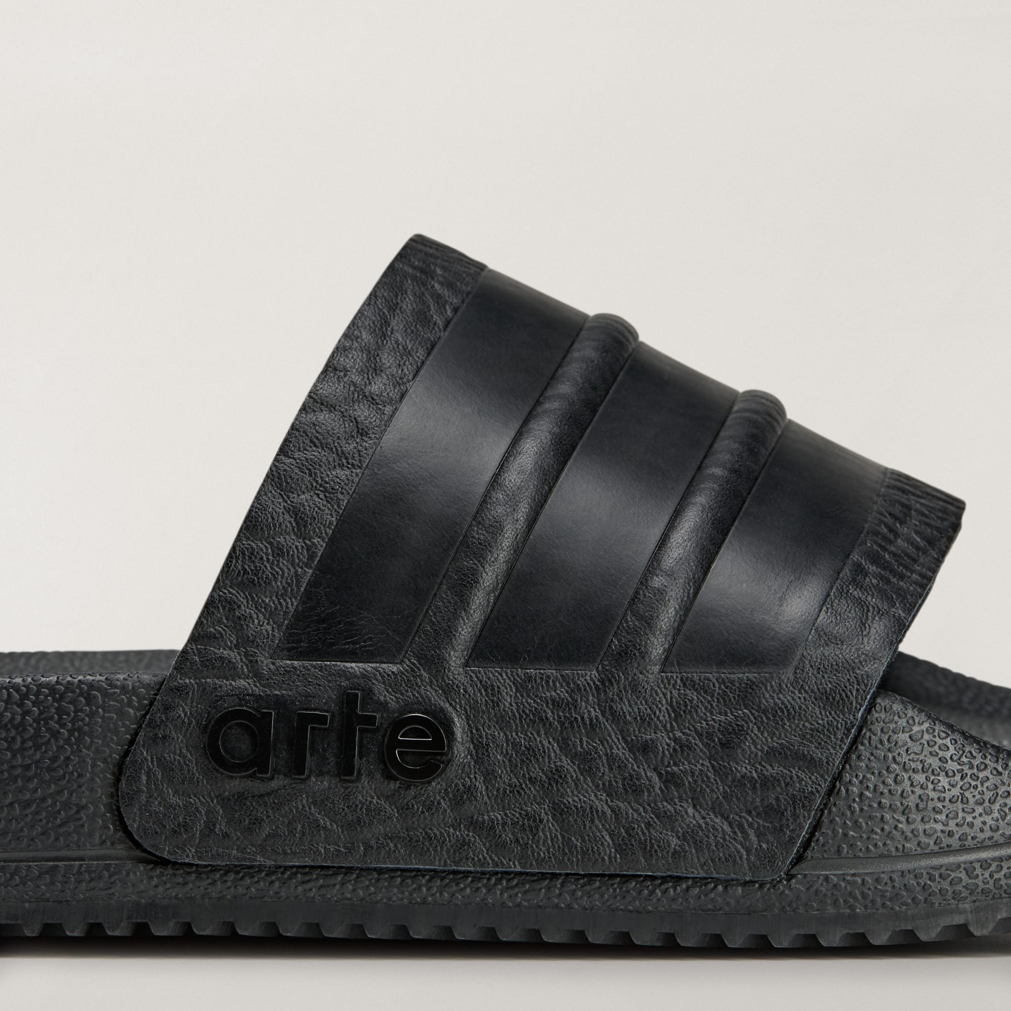 Na skórzanej cholewce mają wytłoczony branding 3 paski marki adidas. Logo Arte nadaje tym klasycznym wsuwanym klapkom charakter.