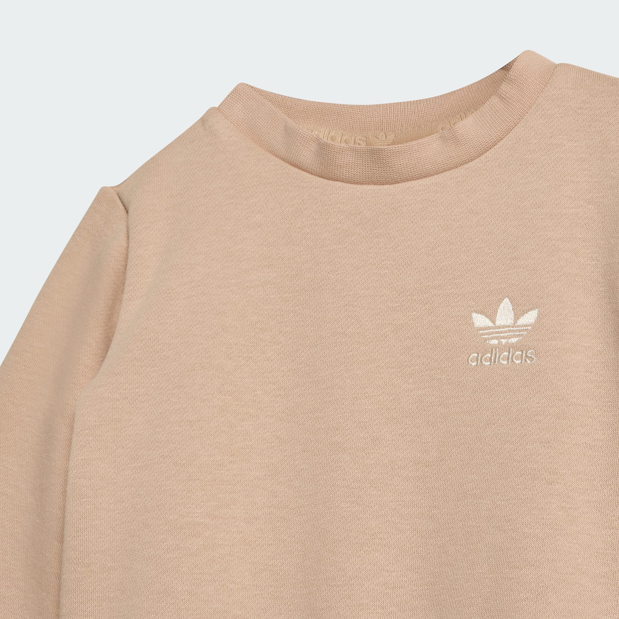 Wprowadź swojego malucha w świat stylu i wygody dzięki dwuczęściowemu zestawowi Crew Set. Ten zestaw dla niemowląt doskonale sprawdzi się podczas zabawy, wycieczek lub zwykłego wylegiwania się w domu. Miękki polarowy materiał jest przyjemny w dotyku, a klasyczny okrągły dekolt i standardowy krój zapewniają ponadczasowy styl. Dzięki średnio zabudowanej talii i zapięciu na guziki ten zestaw jest łatwy do zakładania i zdejmowania, co czyni go praktycznym wyborem dla zapracowanych rodziców. Niezależnie od tego, czy planujecie dzień w parku, czy też może rodzinne spotkanie, ten zestaw to idealny wybór gwarantujący styl i wygodę. Poznaj oryginalny styl adidas dzięki zestawowi, w którym dziecko będzie nie tylko doskonale się czuć, ale też świetnie wyglądać.
