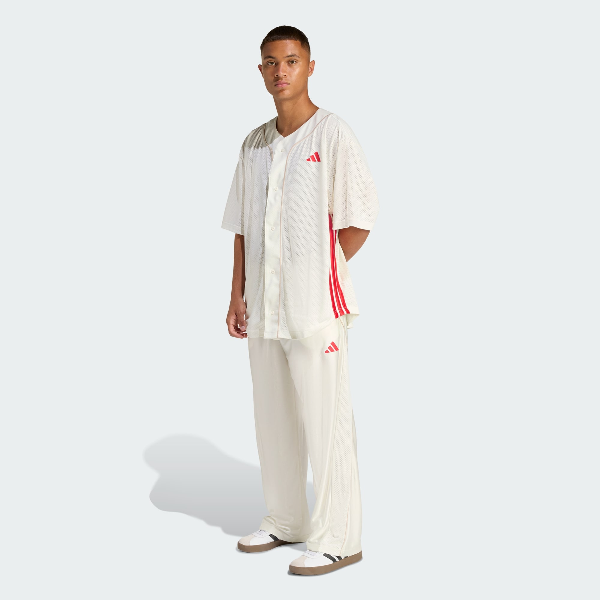Koszulka Stadium Mesh Baseball wprowadza w barwny świat sportów amerykańskich. Zainspirowana doświadczeniami kibiców i duchem wspólnoty nawiązuje do różnorodności i pasji, które łączą fanów piłki nożnej, koszykówki i baseballu. Lekka i swobodna koszulka z krótkim rękawem łączy luźny krój z oddychającą siateczką, zapewniając łatwą wygodę. Zapięcie na 5 guzików dodaje swobodnego charakteru, sprawiając, że koszulka sprawdzi się zarówno na trybunach, jak i podczas luźnego dnia w mieście. Wykończona satynowymi 3 paskami i lamówką podkreśla charakterystyczny styl adidas. Została zaprojektowana tak, aby zapewniać komfort i styl od stadionu po ulicę.