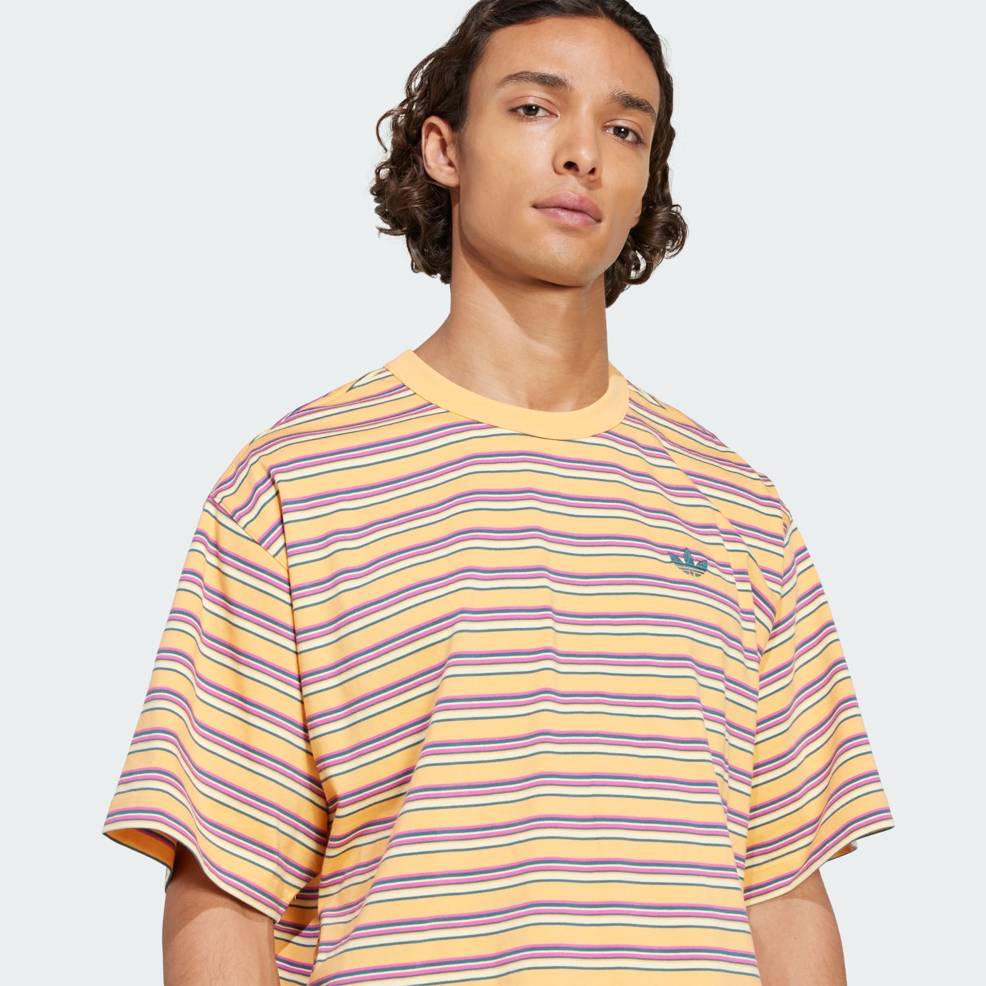 Paski są klasyczne, a ta koszulka adidas Originals pasuje do wszystkiego. Koszulka jest śmiała i swobodna, dzięki czemu wnosi swobodną, letnią energię do każdej sytuacji i o każdej porze. Model z miękkiej bawełny ma luźny, swobodny krój.
