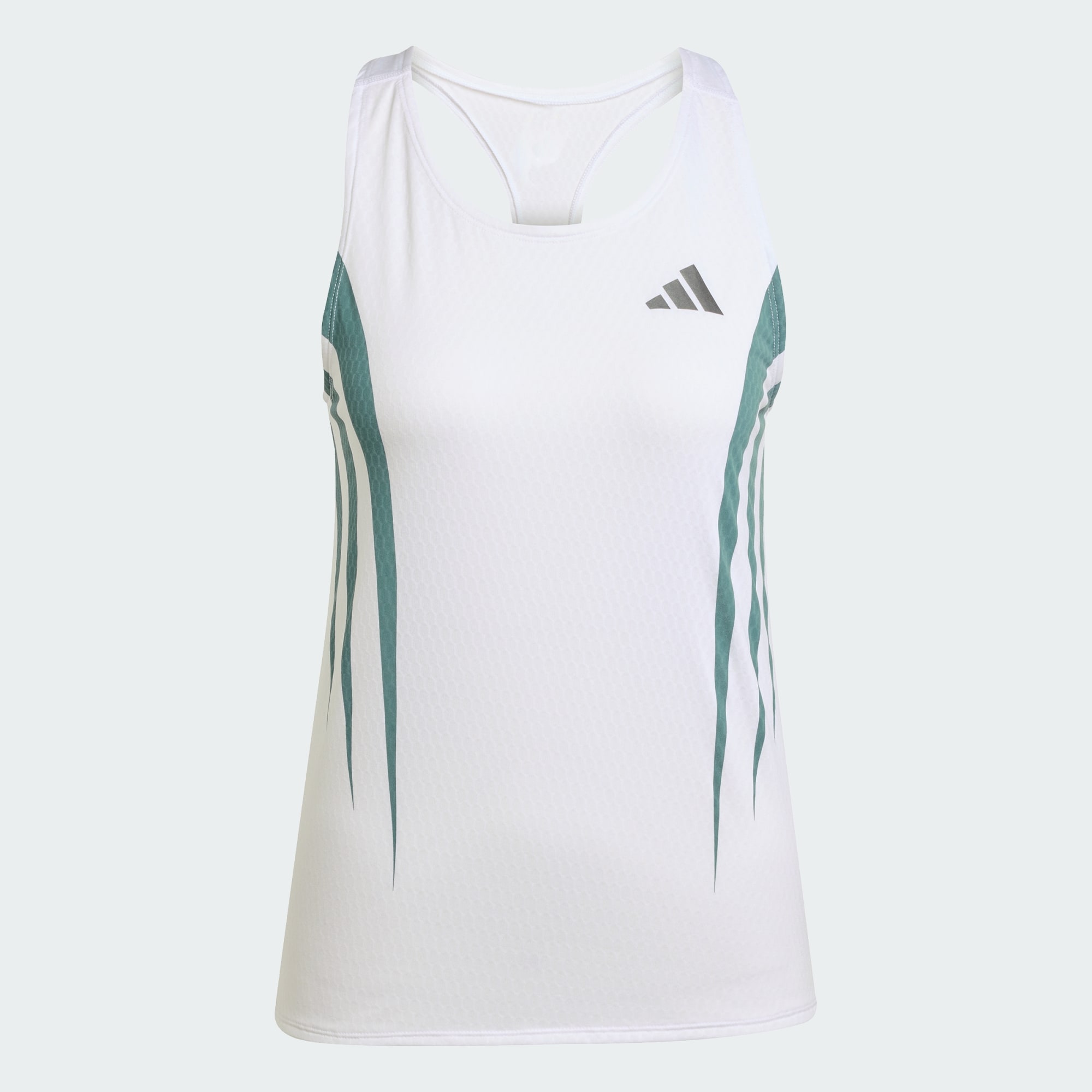 Ta koszulka bez rękawów Adizero jest inspirowana tradycyjnym sportowym stylem adidas i łączy oldschoolowy wzór z najnowszymi technologiami. Wąski krój zapewnia idealne dopasowanie kiedy koncentrujesz się na wysiłku System CLIMACOOL pochłania i odprowadza pot, zapewniając uczucie chłodu i suchości i eliminując czynniki rozpraszające. Design z bokserskimi wycięciami pozwala na pełną mobilność, dzięki czemu możesz się rozciągać i poruszać tak, jak lubisz. Miękki, szybkoschnący materiał reguluje wilgoć, aby zapewnić Ci chłód i wygodę od początku do końca.