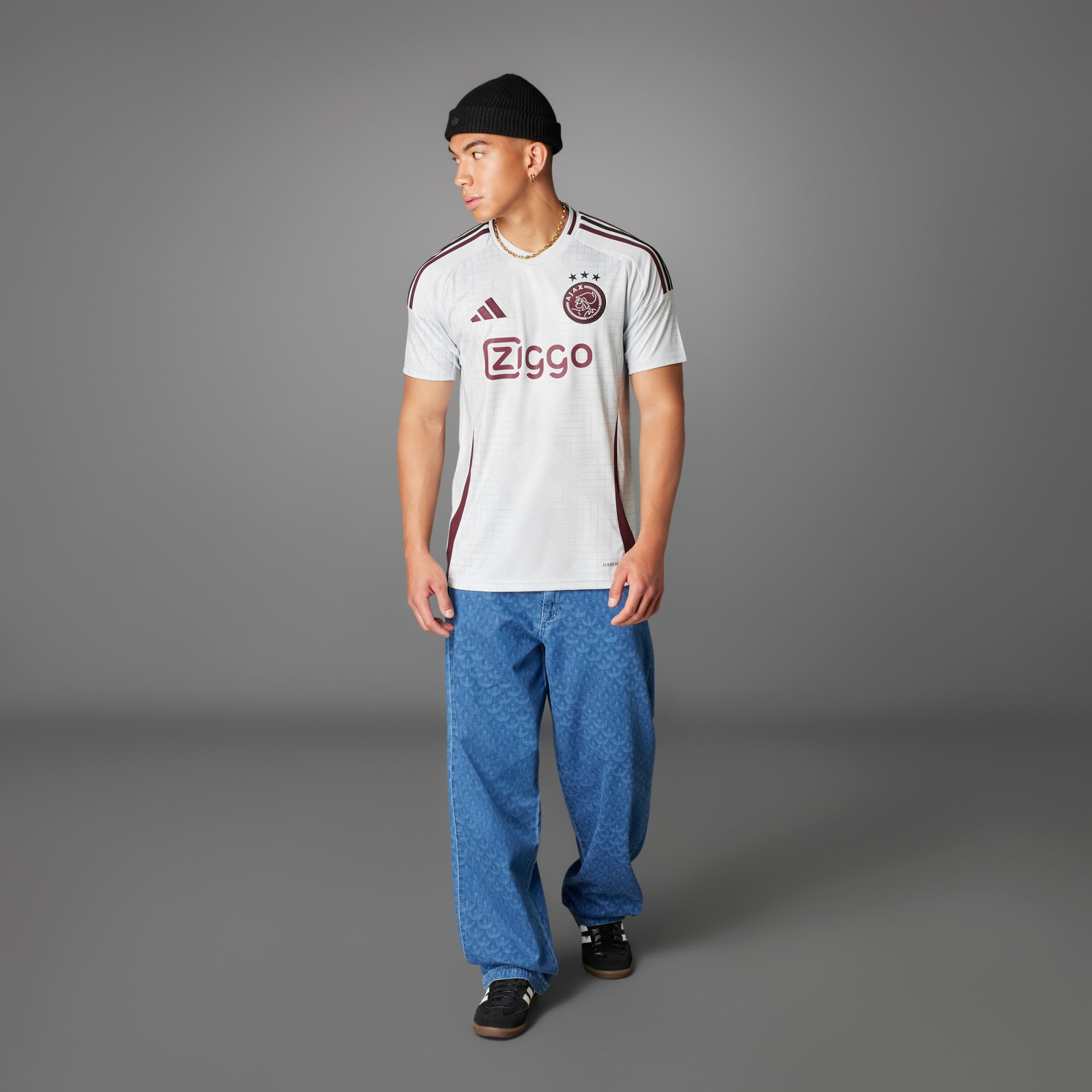 Ajax. Amsterdam. Większość kibiców piłkarskich nie wyobraża sobie jednego bez drugiego. Koszulka adidas z trzeciego zestawu oddaje hołd temu połączeniu przy pomocy designu inspirowanego sławnym symbolem miasta „XXX” i jego architekturą w stylu art deco. Naszywka klubu w kolorze burgundu wyróżnia się na stonowanej kolorystycznie grafice, podkreślając Twoje oddanie dla klubu. Odprowadzający wilgoć AEROREADY zapewnia suchy komfort podczas każdej akcji, strzałach i świętowaniu. Ten produkt został w 100% wykonany z materiałów pochodzących z recyklingu. Ponowne wykorzystanie materiałów wtórnych pomaga nam ograniczyć ilość generowanych odpadów i uniezależnić od kurczących się zasobów surowców. W ten sposób zmniejszamy także ślad węglowy naszych produktów.