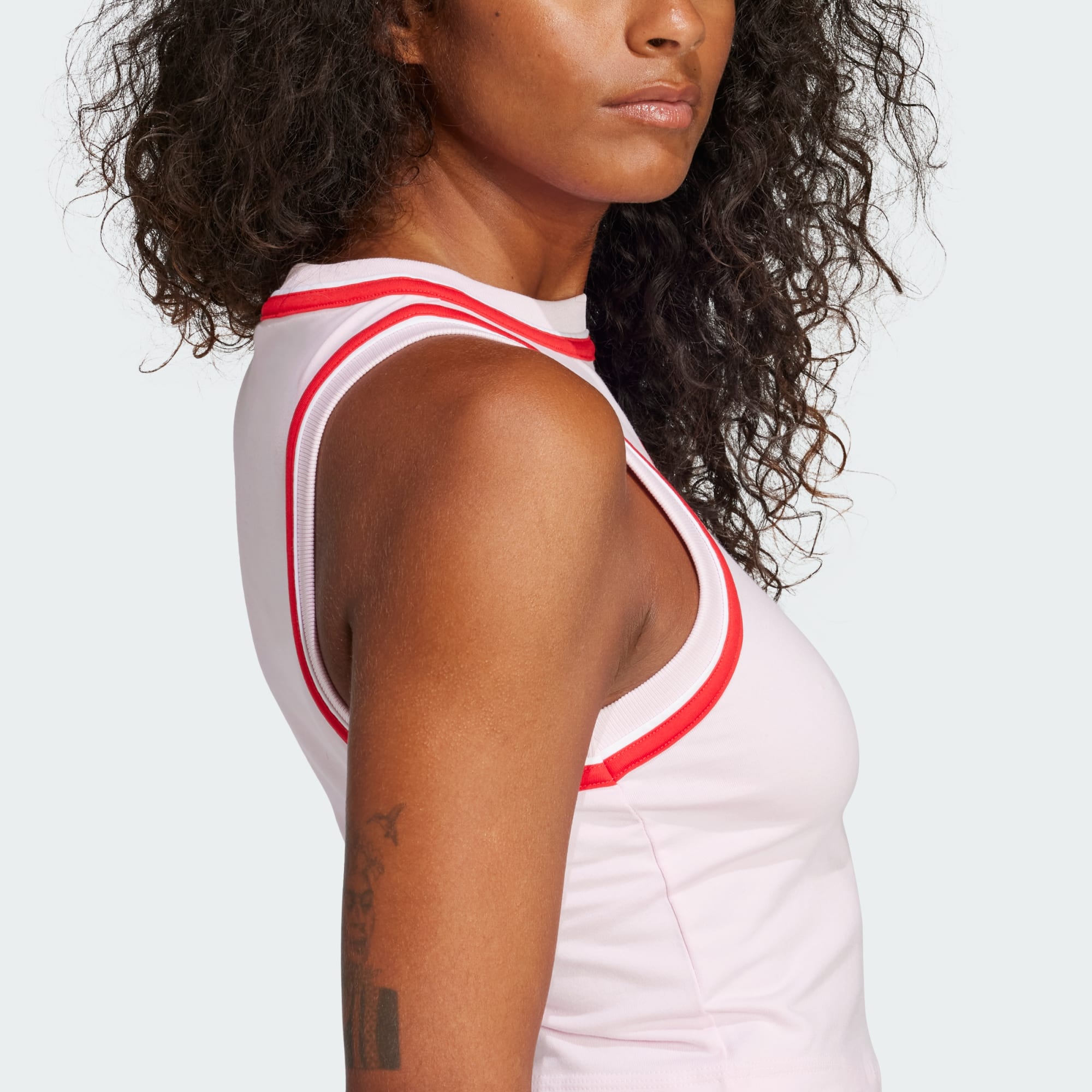 Krótka koszulka bez rękawów stworzona z myślą o przygodach w ciepłe dni. Subtelne detale w kontrastowych kolorach stanowią nową odsłonę tego podstawowego elementu sportowej garderoby. Uszyto ją z miękkiej dzianiny bawełnianej i wyposażono w kontrastowe detale wokół dekoltu i wycięć na ramiona, które stanowią zaskakujący akcent. Zestaw ten model z szortami z wysoką talią lub ulubionymi dżinsami, aby uzyskać wygodny, a jednocześnie stylowy look.