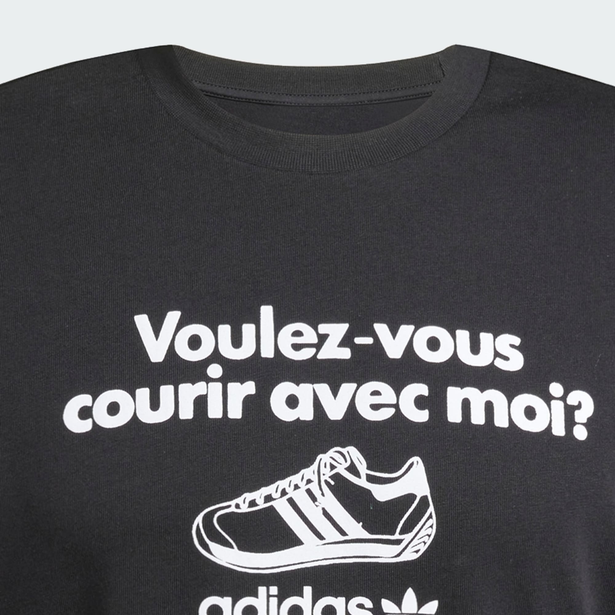 Napis „Voulez-vous courir avec moi” nad zdjęciem butów adidas w stylu retro wyróżnia się na przodzie tej koszulki z grafiką od adidas. Koszulka o standardowym kroju z miękkiej bawełny zapewni Ci komfort przez cały dzień. Zestaw ją ze spodniami dresowymi lub szortami, aby uzyskać zabawny, swobodny look.