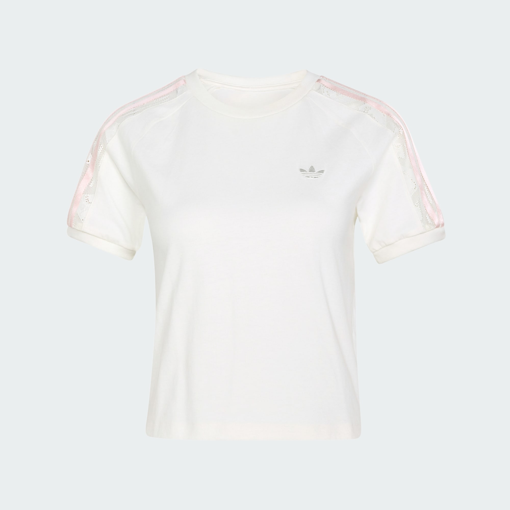 Koszulka Lace Cali łączy w sobie koronkowe wykończenie ze sportową elegancją. Ten model jest celebracją buntowniczego ducha adidas Originals dzięki kultowym elementom projektu i nowoczesnym akcentom. Koszulka została uszyta z bawełnianej dzianiny i ma dopasowany krój, który otula ciało, dzięki czemu można poczuć się zarówno stylowo, jak i komfortowo. Okrągły dekolt dodaje klasycznego charakteru, dzięki czemu jest to uniwersalny model na różne okazje. Ta koszulka adidas to coś więcej niż zwykły top. To manifestacja stylu. Dzięki misternym koronkowym detalom koszulka uosabia esencję sportowej kobiecości, co czyni ją wspaniałym wyborem dla osób, które nie boją się przeciwstawić zwykłości.