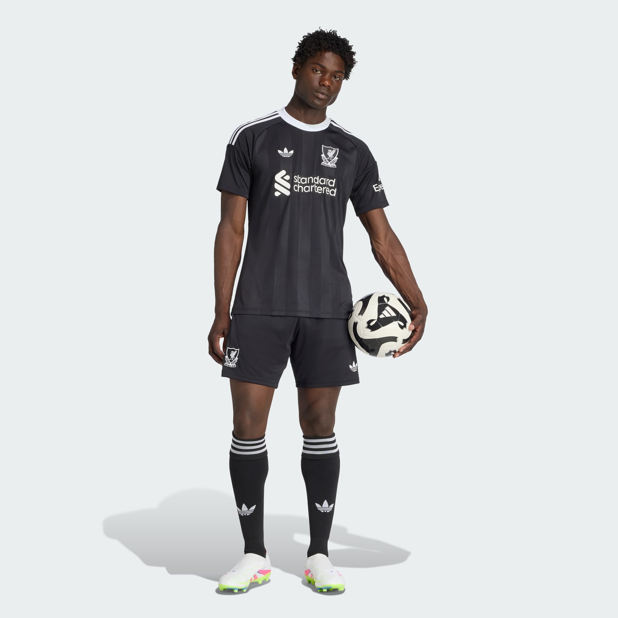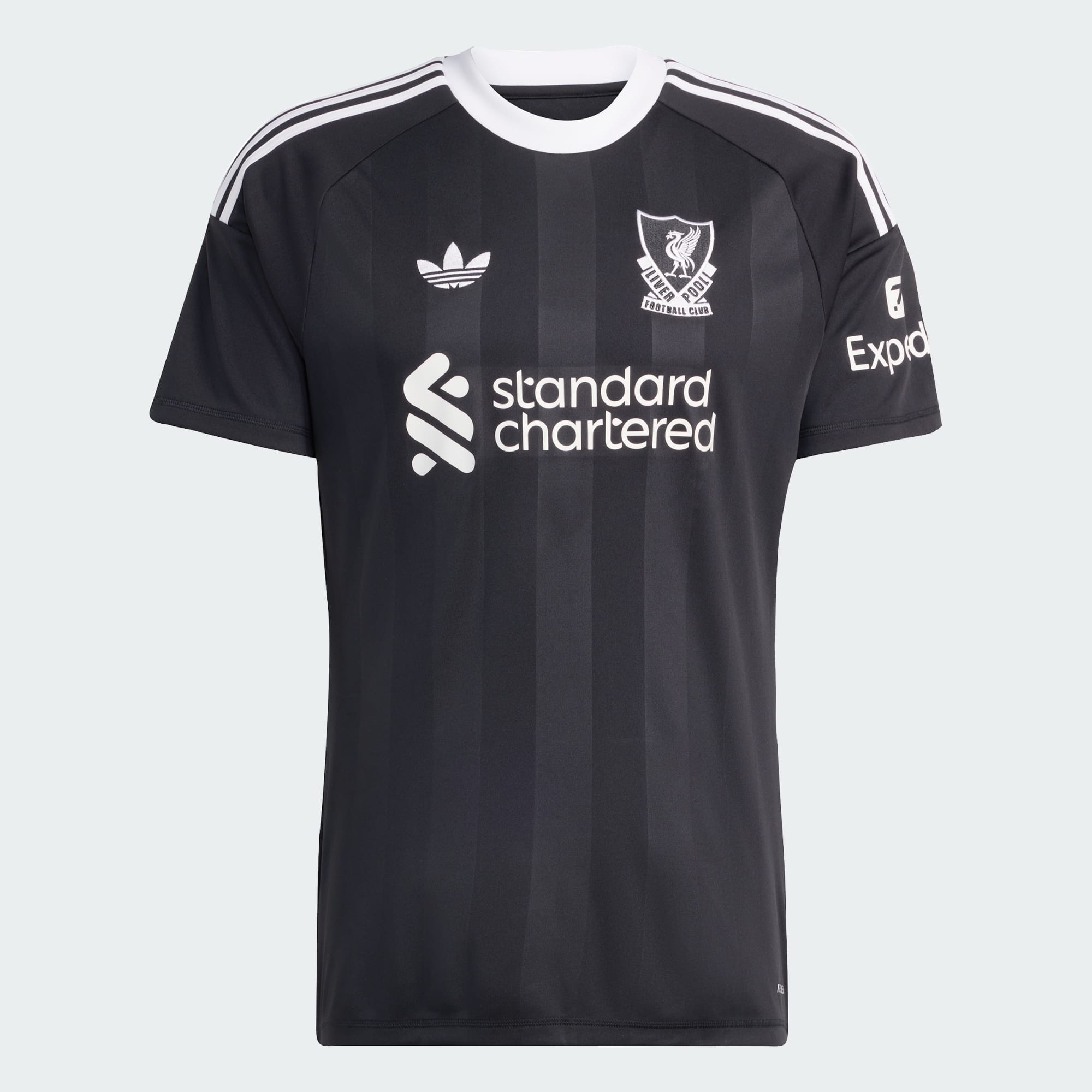 Koszulka bramkarska Liverpool FC została stworzona, aby pomóc drużynie zachować czyste konto na meczach wyjazdowych. Jest ozdobiona logo Trefoil i godłem klubu w stylu vintage, podobnie jak koszulki z trzeciego zestawu zawodników Liverpool FC. Utrzymana w charakterystycznych czarnych barwach ma elastyczny krój, który porusza się z każdym ruchem, umożliwiając grę bramkarską na najwyższym poziomie. AEROREADY dyskretnie usuwa wilgoć, wspierając utrzymanie koncentracji przy każdym piłkarskim zagrożeniu.