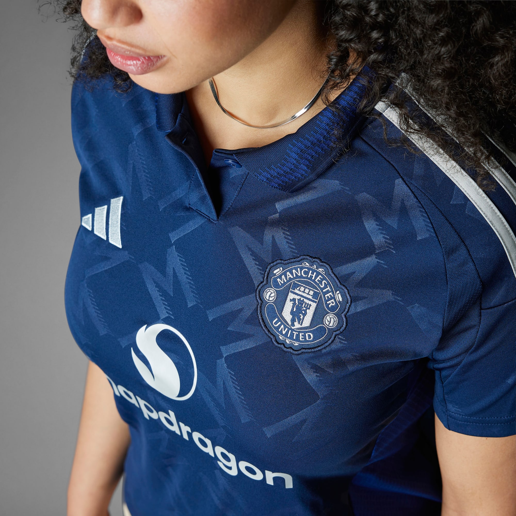 Koszulka adidas Manchester United o śmiałym designie, który stanowi ukłon w stronę kultury piłkarskiej, wygląda równie dobrze na boisku, jak i poza nim. Srebrne detale wyróżniają się na tle indygo z subtelnym, powtarzającym się monogramem z literą „M”. Jasnoniebieska grafika na stylowym kołnierzyku polo nawiązuje do rzeki, nad którą leży Old Trafford. Odprowadzający wilgoć AEROREADY zapewnia kibicom komfort. Ten produkt został wykonany w 100% z materiałów pochodzących z recyklingu. Ponowne wykorzystanie materiałów wtórnych pomaga nam ograniczyć ilość generowanych plastikowych odpadów i uniezależnić od kurczących się zasobów surowców. W ten sposób zmniejszamy także ślad węglowy naszych produktów.