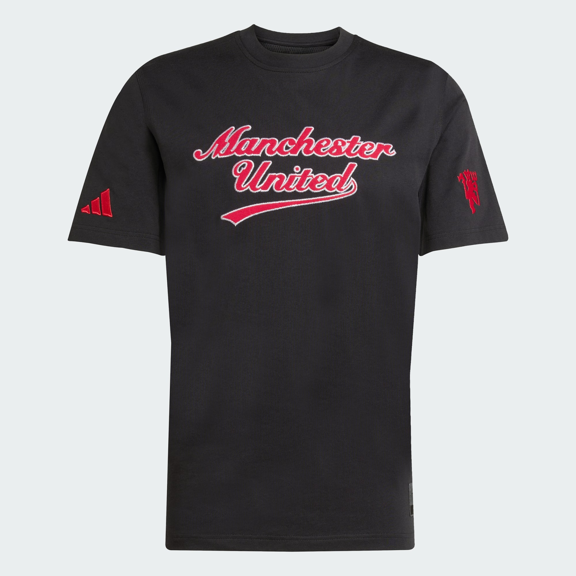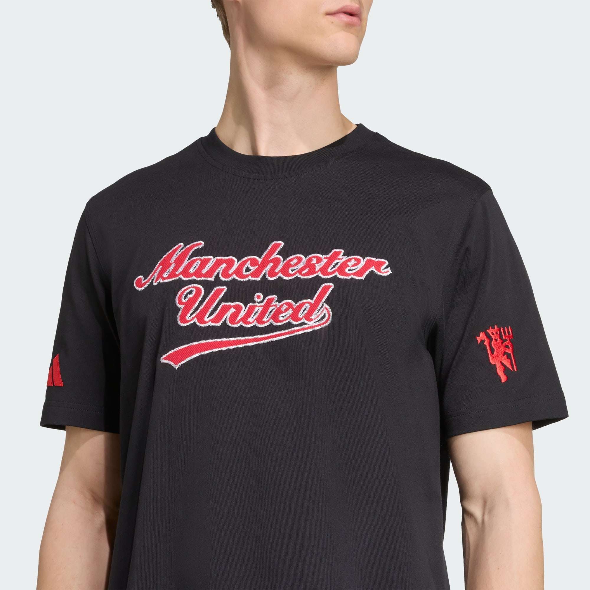 Ta koszulka adidas, będąca częścią kolekcji inspirowanej Stanami Zjednoczonymi, wyraża Twoją lojalność wobec Manchesteru United i zapożycza wzór z zestawu baseballowego. Stylizowana nazwa drużyny na klatce piersiowej będzie wyglądać równie dobrze na boisku do baseballu, jak i w tłumie fanów piłki nożnej. Miękka dzianina zapewnia Ci komfort, gdy reprezentujesz swoją drużynę.