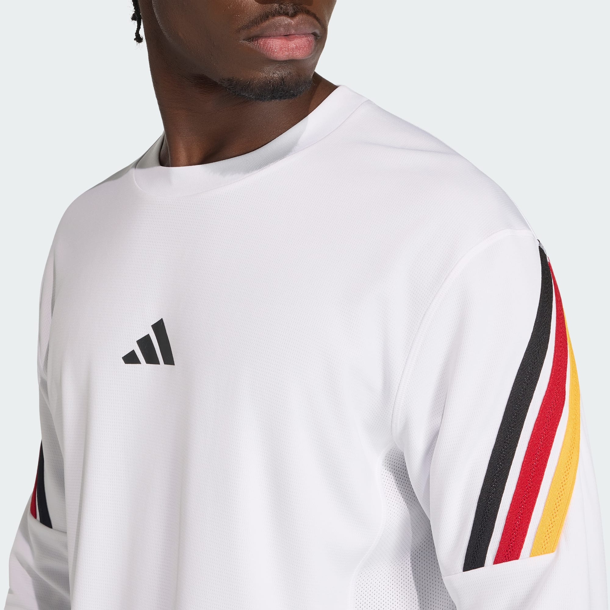 Rzucaj do kosza w wielkim stylu dzięki koszulce z długim rękawem DBB Basketball, inspirowanej mistrzostwem niemieckiej reprezentacji na parkiecie. Ta innowacyjna koszulka z technologią odprowadzającą wilgoć gwarantuje świetny wygląd i doskonałe samopoczucie. Technologia Climacool odprowadza i rozprasza wilgoć, zapewniając uczucie chłodu i suchości oraz pełne skupienie. Luźny krój zwiększa przewiewność, pozwalając na nieskrępowany ruch podczas zwrotów, wyskoków i rzutów. Wejdź na wyższy poziom gry i niewymuszonego stylu. Łącząc sportową funkcjonalność z miejskim stylem, ten model nie pozostawia wątpliwości, że to adidas.