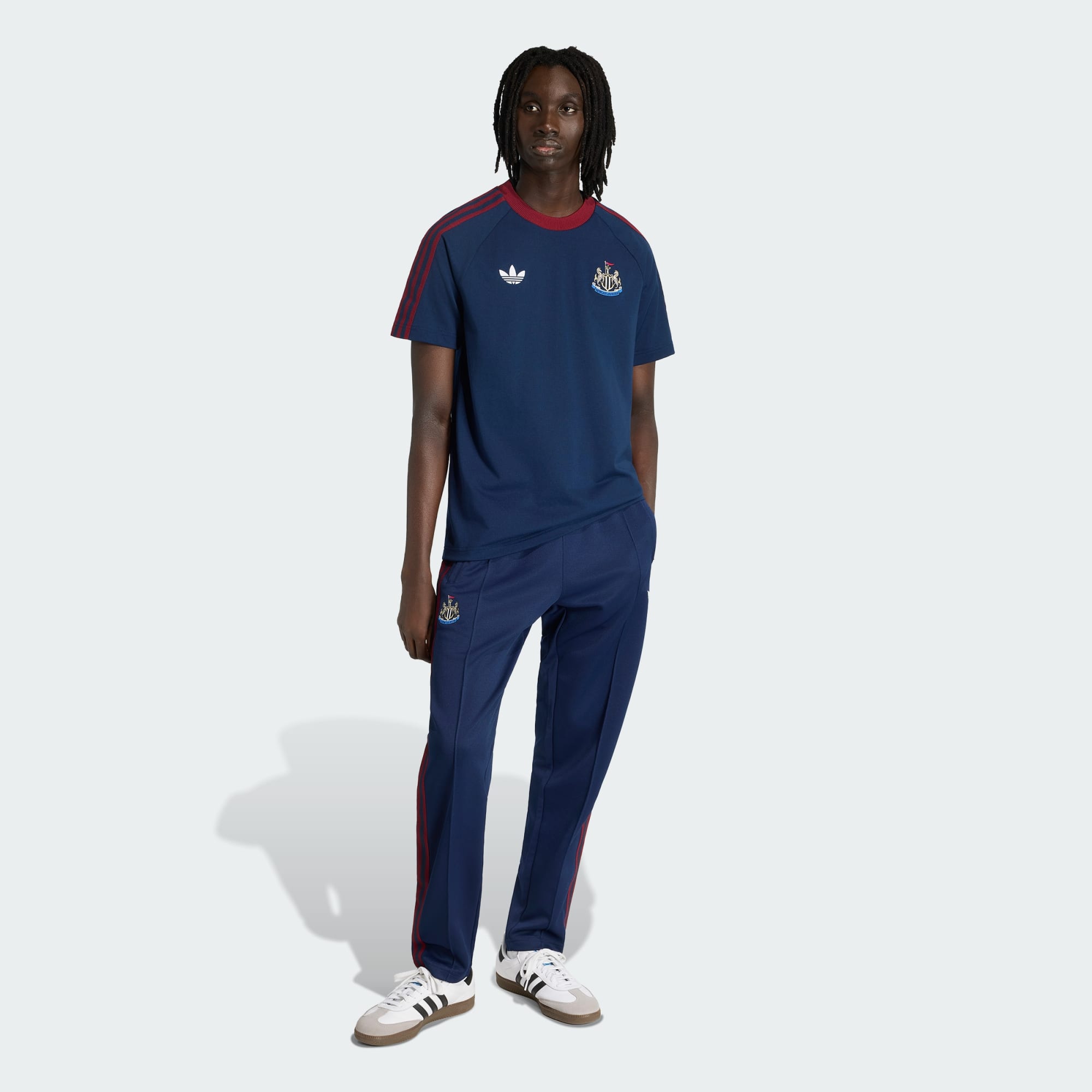 Inspirowana dziedzictwem kulturowym koszulka Newcastle United z wyhaftowanym godłem klubu i logo Trefoil.