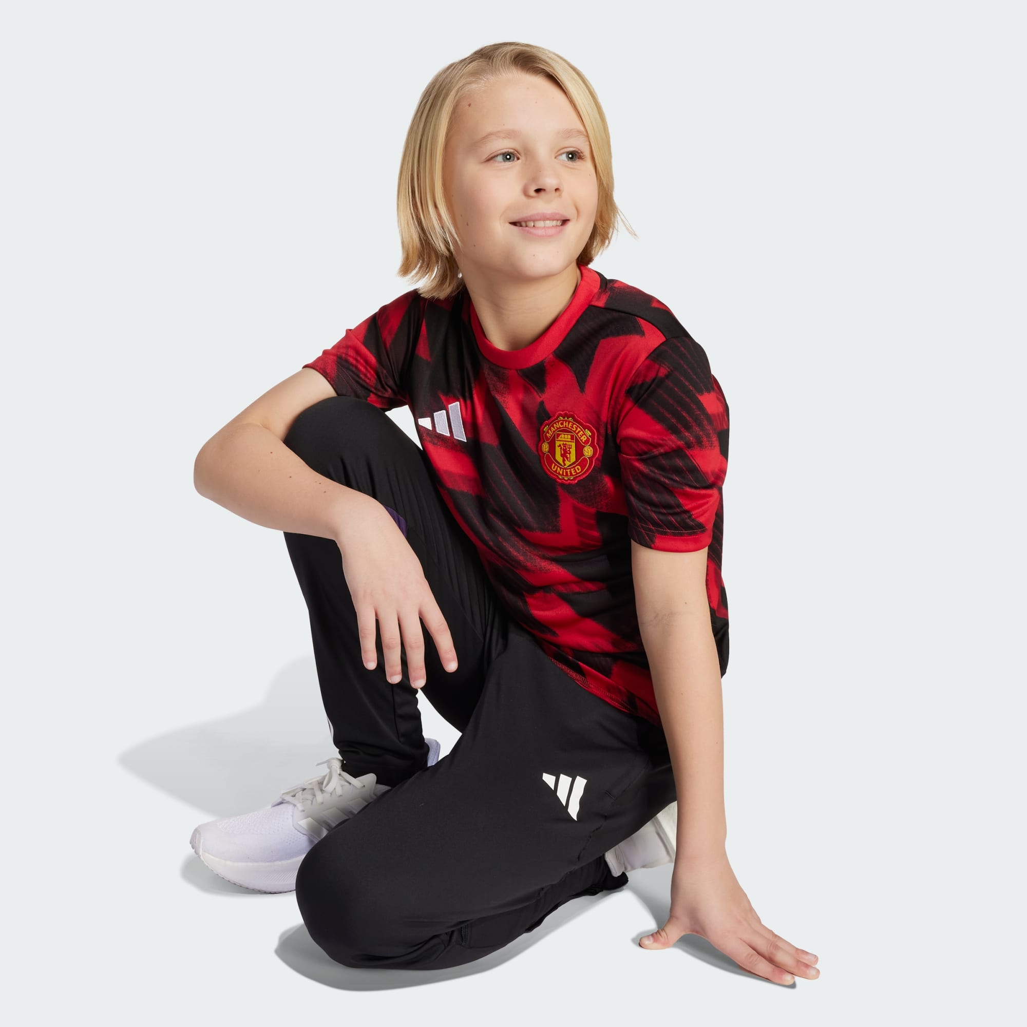 Pokaż swoje przywiązanie do Manchesteru United w młodzieżowej wersji koszulki, którą piłkarze zakładają przed meczem. Tradycyjne domowe barwy i kultowa grafika płatka śniegu adidas nawiązują do stylu lat dziewięćdziesiątych. Technologia AEROREADY odprowadza wilgoć, gdy oglądasz swoich idoli lub przygotowujesz się do własnego meczu.