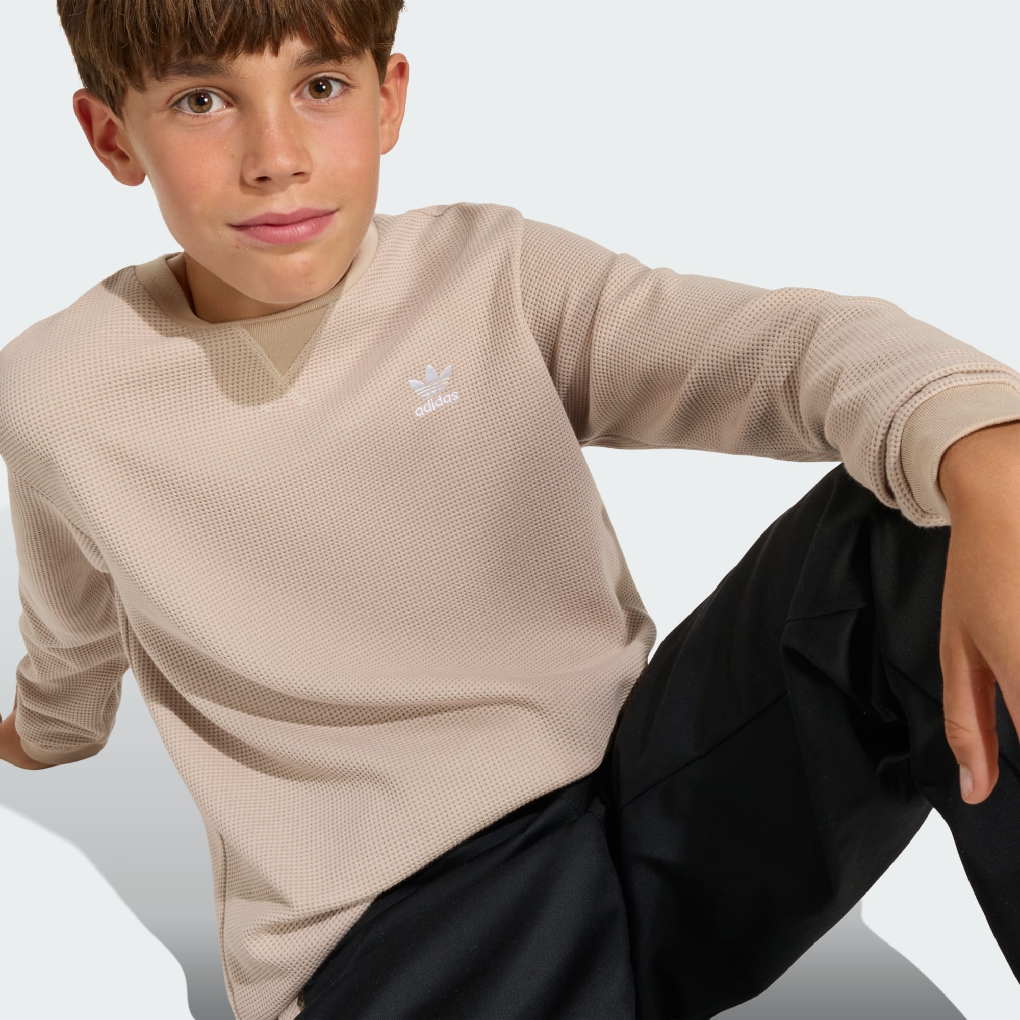 Koszulka z długim rękawem Regular Waffle została stworzona z myślą o naturalnym stylu. Model zaprojektowano dla osób, które lubią wyrażać siebie, łącząc wygodę i uniwersalność. Koszulka z długim rękawem sprawdza się zarówno podczas zabawy, jak i odpoczynku, stając się niezawodnym towarzyszem codziennych aktywności. Podwójna dzianina zapewnia miękkość i ciepło, gwarantując komfort noszenia przez cały dzień. Wyszywane logo na klatce piersiowej podkreśla dziedzictwo adidas i nawiązuje do energicznego charakteru marki. Standardowy krój zapewnia swobodę ruchów, a okrągły dekolt nadaje klasyczny wygląd, ułatwiając łączenie z ulubionymi stylizacjami. Model pozwala wyrazić osobowość i dopasowuje się do codziennego, aktywnego stylu życia, nie rezygnując z wygody.