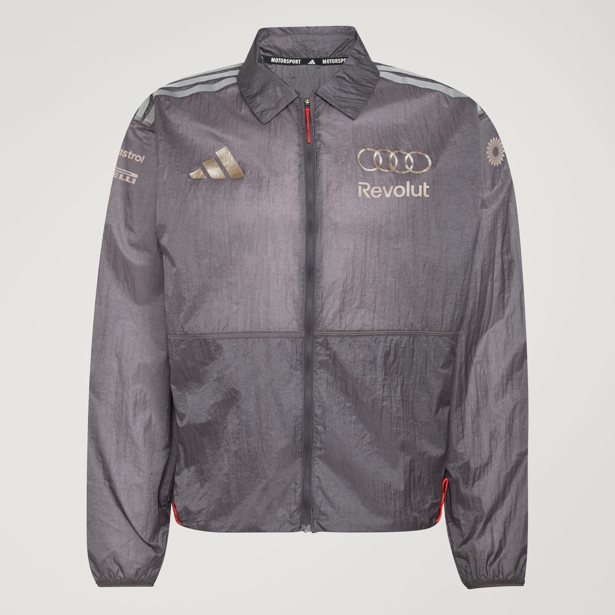 Zanurz się w świecie sportów motorowych dzięki tej kurtce Audi Revolut F1® Team Driver Paddock. Ten model został stworzony dla osób, które żyją szybko, i uosabia ducha toru dzięki eleganckiemu wzornictwu i funkcjonalnym elementom. Luźny krój zapewnia wygodę i styl, dzięki czemu sprawdzi się zarówno na padoku, jak i poza nim. Kurtka ma mnóstwo przemyślanych detali, w tym profilowane rękawy zapewniające naturalny zakres ruchu i elementy odblaskowe gwarantujące wyróżniający się wygląd. Laserowo wycięte perforowane 3 paski z tyłu dodają odrobinę kultowego dziedzictwa, a pakowna konstrukcja pozwala łatwo schować kurtkę, gdy nie jest potrzebna. Mała torba umieszczona w lewej kieszeni zapewnia wygodę. Niezależnie od tego, czy jesteś kierowcą czy fanem, ta kurtka adidas jest przepustką do przeżywania emocji związanych z wyścigiem. Doświadcz płynnego połączenia stylu i wydajności dzięki tej współpracy.