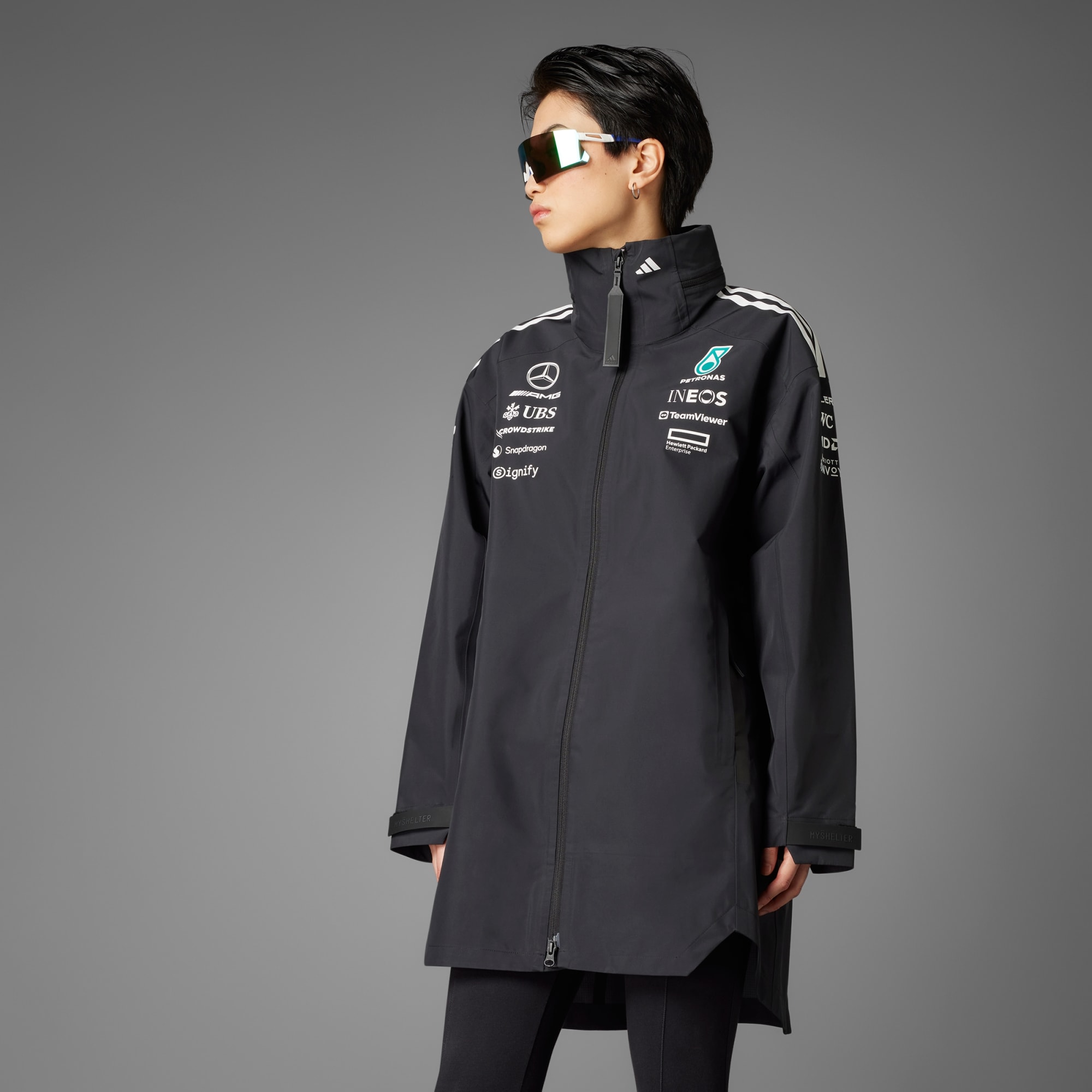 Kurtka adidas x Mercedes-AMG PETRONAS F1 MyShelter wyróżnia się stylem i wyjątkową funkcjonalnością. Dzięki technologii RAIN.RDY, wykorzystującej zaawansowane wodoodporne materiały, będziesz w gotowości na każde warunki, jak zespół Mercedes-AMG.