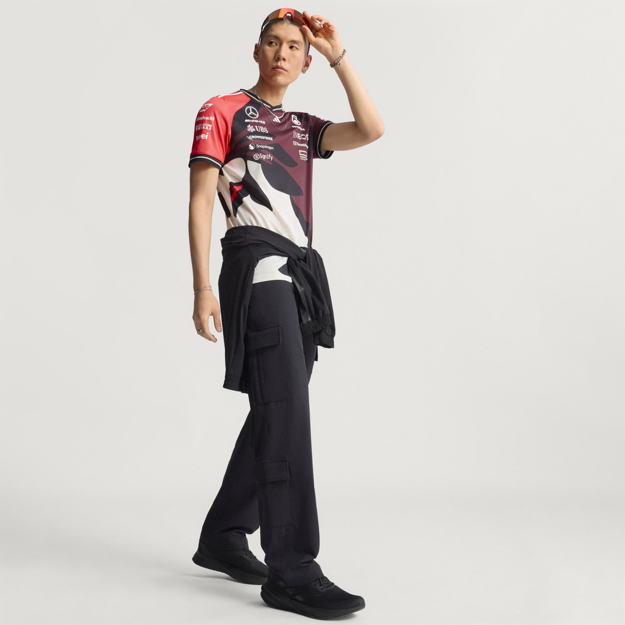 Poczuj przypływ energii w dniu wyścigu w replice koszulki kierowcy Mercedes - AMG Petronas Formula One Team od adidas Motorsport. Koszulka z krótkim rękawem inspirowana zestawem noszonym przez Twoich ulubionych kierowców łączy wydajność i komfort. AEROREADY reguluje wilgoć, zapewniając Ci przewiewny komfort, nawet gdy akcja nabiera tempa. Logotypy drużyny i sponsora AMG Petronas Formula One nadają całości oficjalny look.