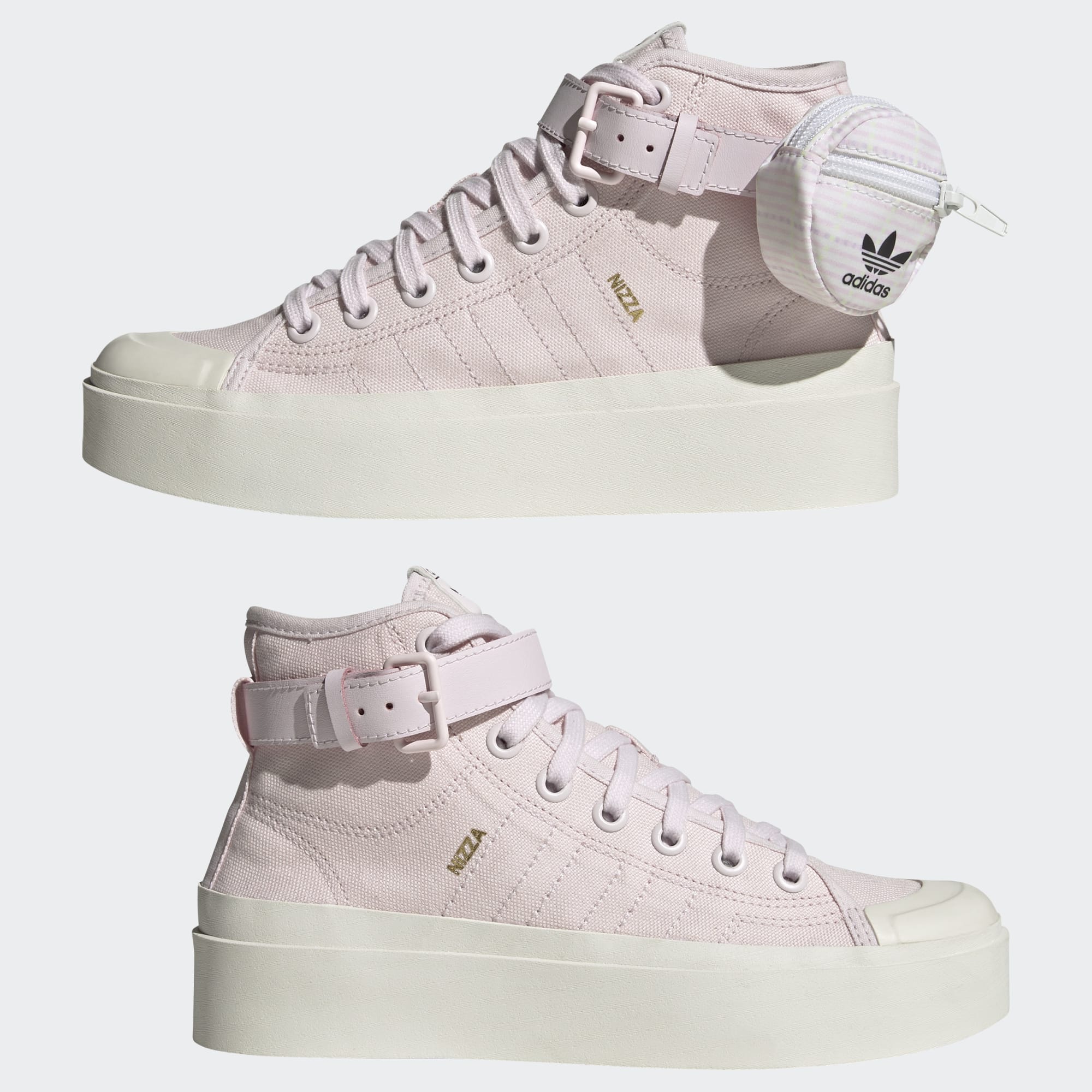 Buty adidas Nizza Bonega przypominają nam o spokojnych dniach, niczym ciepłe promienie słońca. Konstrukcja z miękkiej bawełny współpracuje z wkładką z pianki zapamiętującej kształt stopy, zapewniając komfort przez cały dzień. Odpinana saszetka na akcesoria jest połączona z paskiem w kostce, dzięki czemu łatwo przechowasz niezbędne drobiazgi. Noś je z dżinsowymi szortami lub wygodną sukienką t-shirtową, aby natychmiast zyskać nowoczesny look i teksturę.