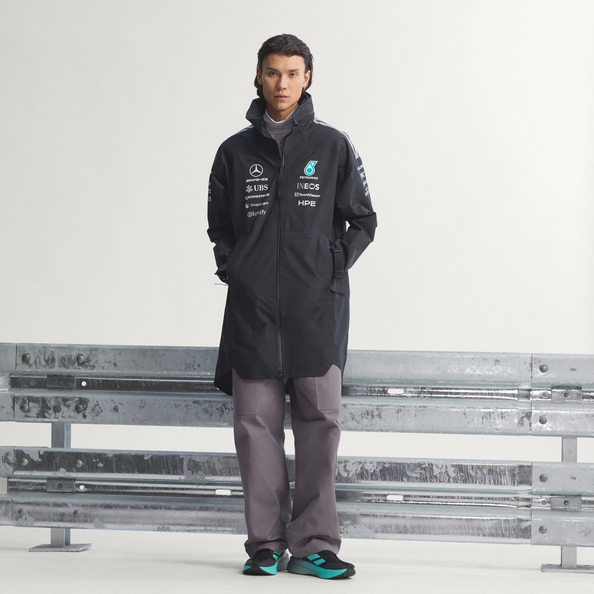 Parka przeciwdeszczowa Mercedes - AMG Petronas Formula 1 Team Engineers to modny dodatek dla fanów sportów motorowych. Zaprojektowana z myślą o osobach, które lubią szybką jazdę, łączy w sobie styl i funkcjonalność niezależnie od pogody. Precyzyjnie wykonana kurtka odzwierciedla ducha zespołu, a jej elegancki krój doskonale sprawdza się zarówno na torze wyścigowym, jak i na ulicach miasta. Dzięki konstrukcji z tkaniny o splocie płóciennym ta parka jest zarówno trwała, jak i stylowa. Technologia RAIN.RDY stanowi ochronę przed czynnikami atmosferycznymi, wykorzystując zaawansowane materiały wodoodporne i konstrukcję, która nie przepuszcza wody. Uszczelnione szwy zwiększają ochronę przed niekorzystnymi warunkami atmosferycznymi, pomagając zachować suchość. Zabudowany dekolt i suwak na całej długości zapewniają dodatkową osłonę, a standardowy krój zapewnia wygodę i swobodę ruchów. Niezależnie od tego, czy poruszasz się po alei serwisowej, czy po miejskiej dżungli, ta kurtka sprawdzi się w każdych warunkach. Branding Mercedes AMG Petronas Formula 1 Team dodaje dodatkowego akcentu autentycznej ekskluzywności, dzięki czemu ta parka jest niezbędnym elementem garderoby zarówno dla fanów, jak i osób podążających za modą. Odkryj przyszłość mody sportów motorowych i ducha buntowniczego optymizmu z marką adidas, gdzie skuteczność spotyka się ze stylem. To coś więcej niż ubranie. To styl życia.