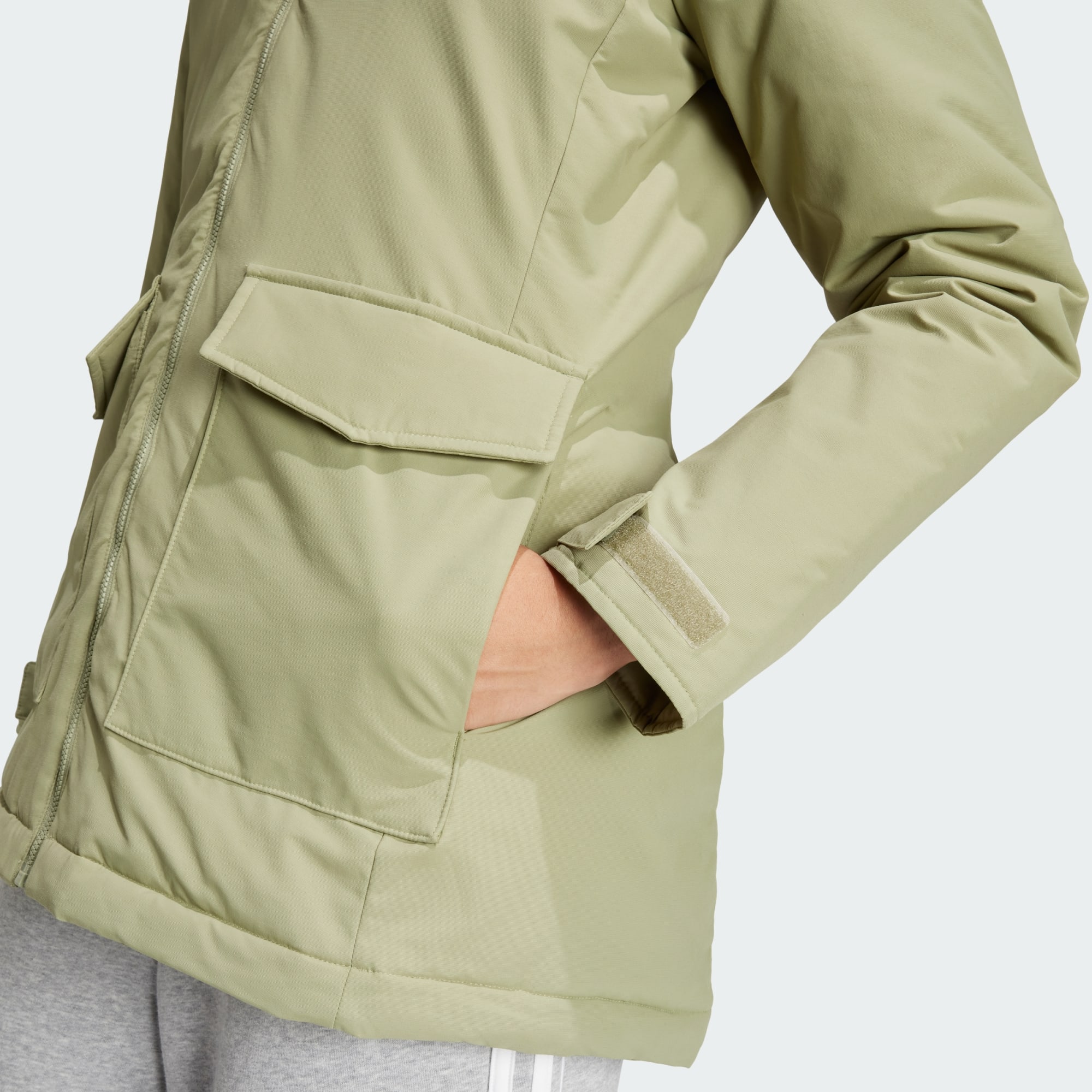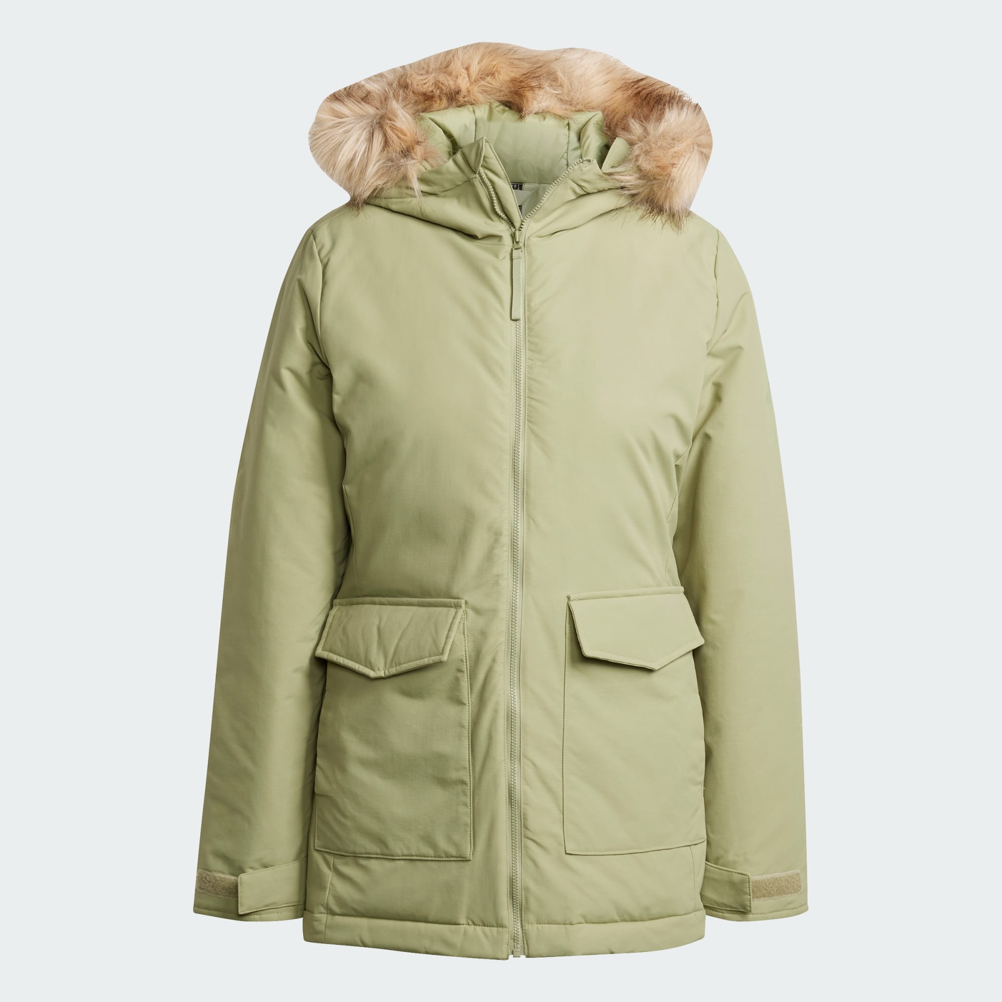 Klasyczny płaszcz w Twojej szafie. Ta parka adidas zapewni Ci komfort bez dodatkowego obciążania. Kaptur ze sztucznym futrem sprawdzi się w rześkie dni, zapewniając przytulne okrycie, gdy pogoda jest niepewna. Poruszaj się swobodnie przez cały dzień, niezależnie od warunków dzięki mocnej, wodoodpornej powłoce DWR, która chroni przed lekkim deszczem.