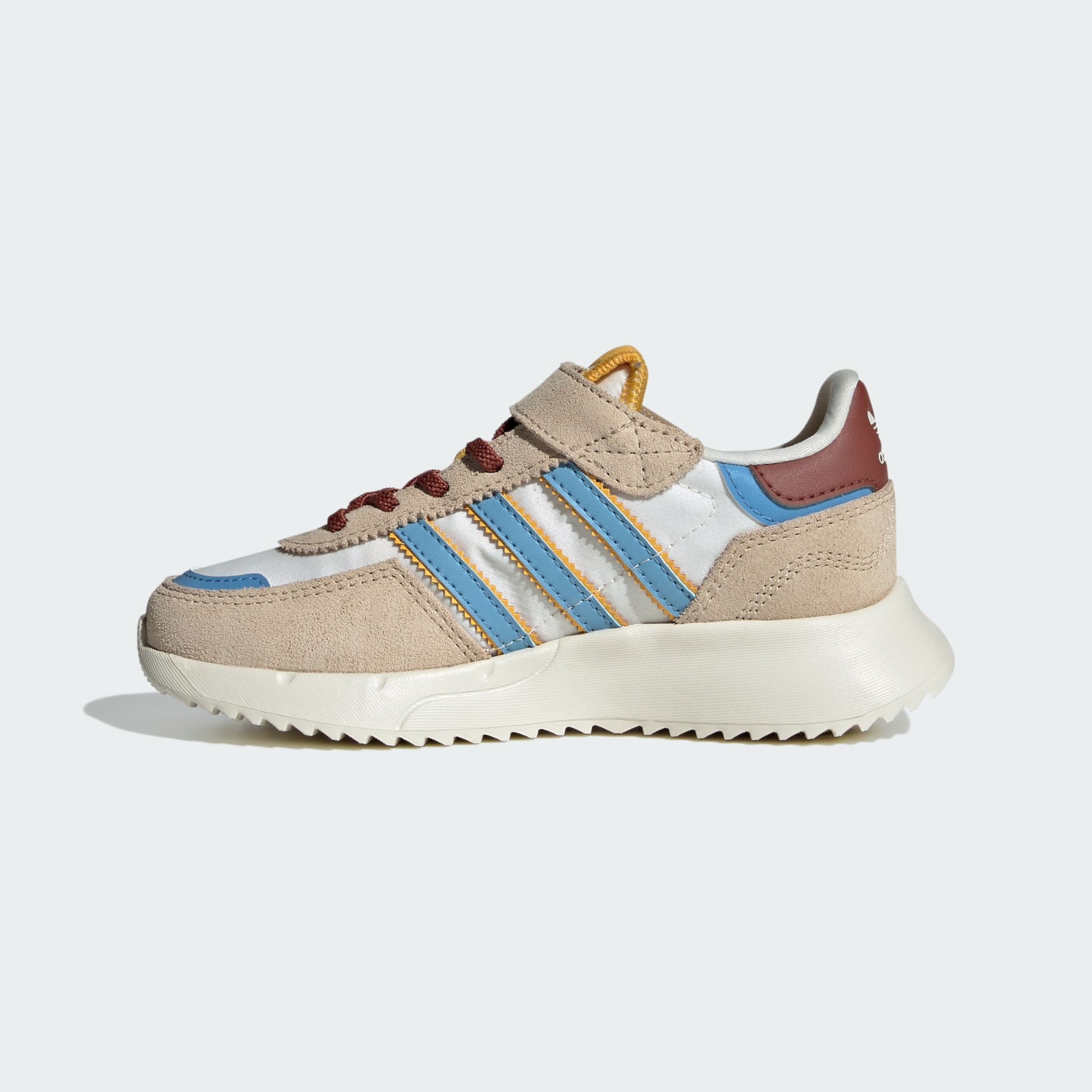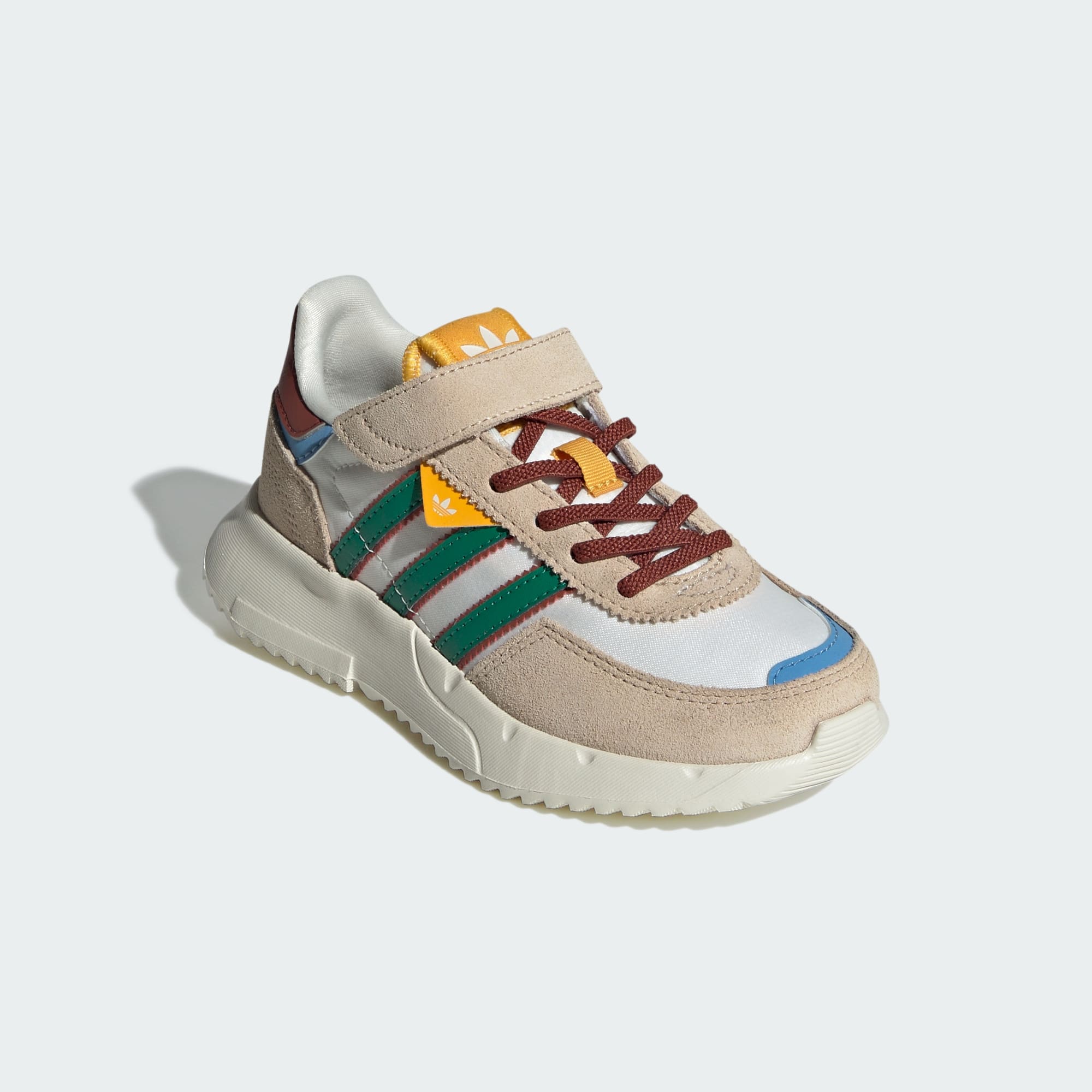 Fast kids deserve a pair of shoes they can get into and out of fast so the fun can commence. These vintage-inspired Retropy F2 Shoes bring the retro energy of the adidas archive combined with a modern fit and feel that's perfectly suited to kids. They're made with lightweight materials throughout, with a flexible and cushiony sole and an easy-to-fasten strap over the top of the laces. Distinct colour schemes give these shoes uniqueness and charm.
