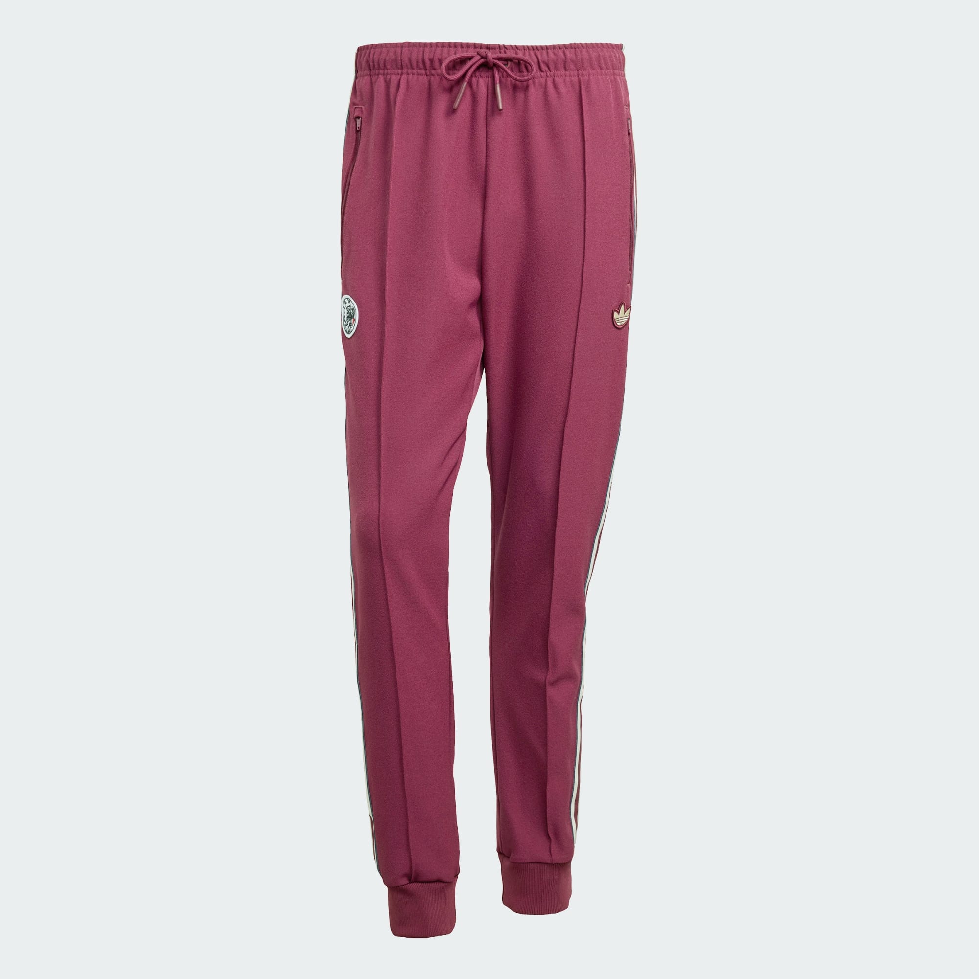 Zainspirowane kultowym stylem trybun lat 80., te spodnie dresowe adidas Ajax Amsterdam pozwalają kibicować drużynie w stylu retro. Mankiety ze ściągaczem i dopasowany krój zapewniają smukły wygląd w ruchu. Wyszywana naszywka klubu uzupełnia całość w piłkarskim stylu.