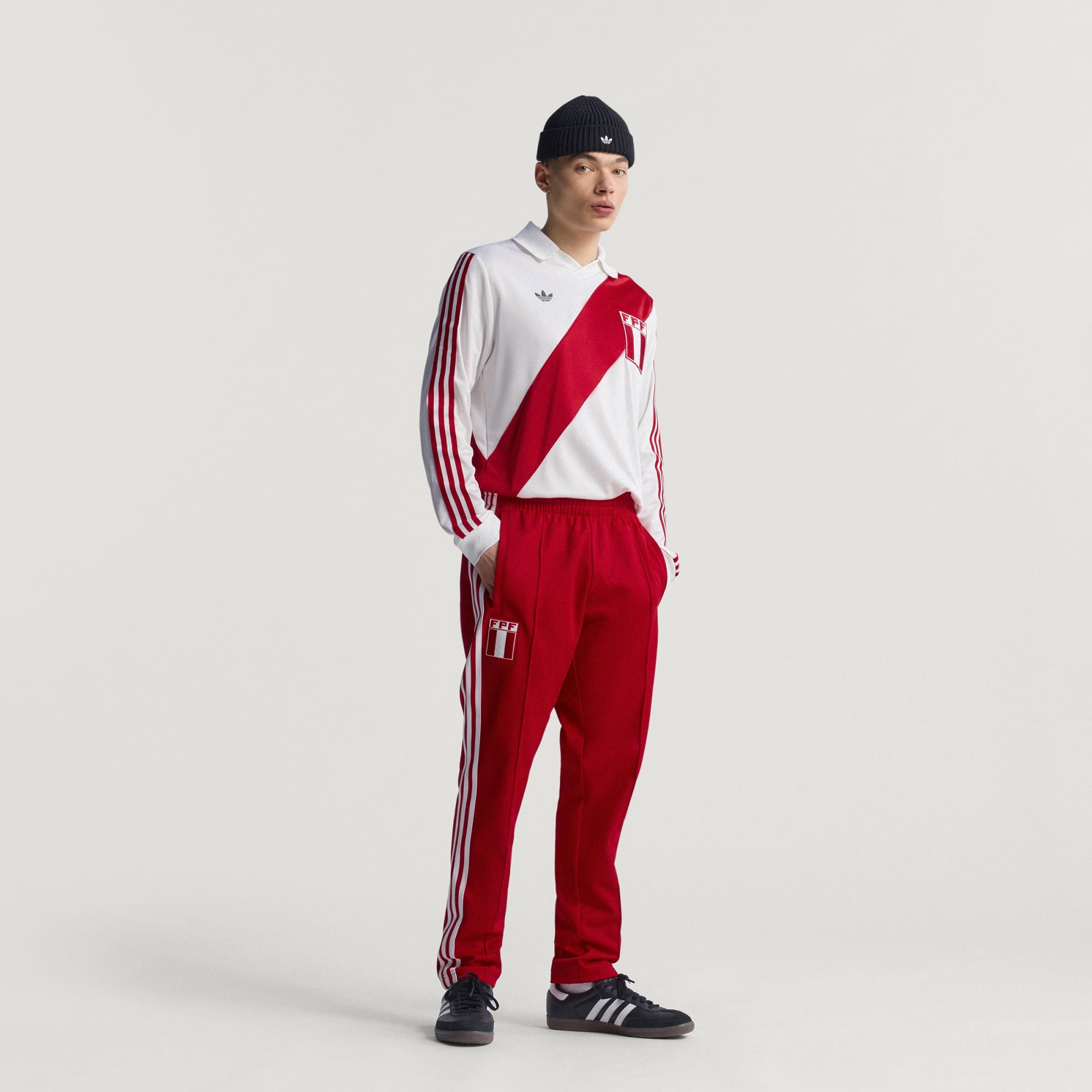 Te spodnie, będące częścią specjalnej kolekcji adidas, która obejmuje słynną koszulkę podstawową drużyny z 1978 roku, są wzorowane na dresach, które zawodnicy Peru nosili podczas największego turnieju piłkarskiego. Gładki materiał piqué zapewnia wygodę, zapewnia komfort, niezależnie od tego, czy kibicujesz dzisiejszej drużynie, czy po prostu prezentujesz swój piłkarski styl. Styl retro dopełniają godło klubu w wersji vintage i logo Trefoil.