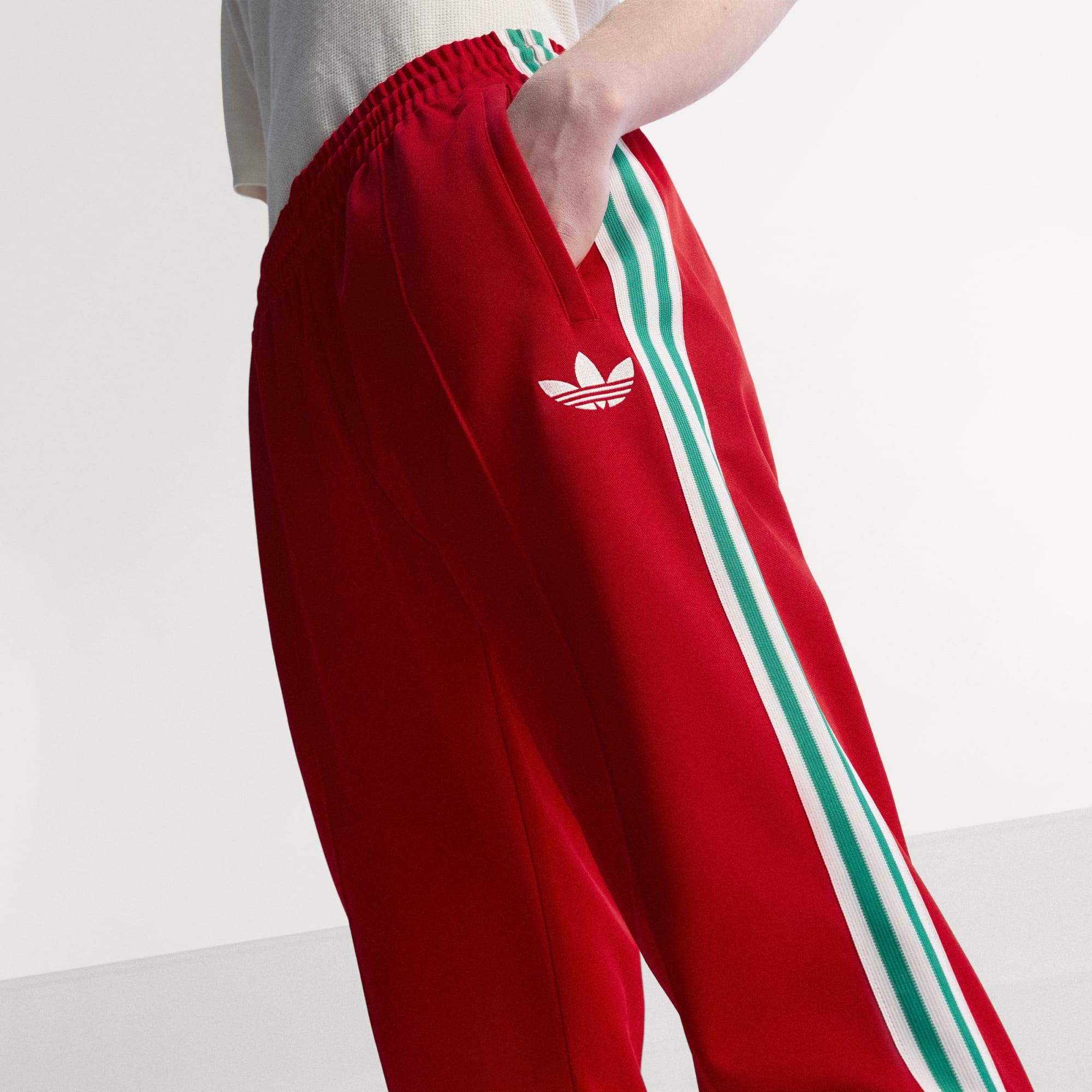 Uczcij dziedzictwo walijskiej piłki nożnej spodniami dresowymi Wales 150 Years Anniversary. Dzięki wzornictwu inspirowanemu historycznymi strojami ten model honoruje bogatą tradycję Walijskiego Związku Piłki Nożnej. Ten produkt przemawia do wszystkich miłośników stylu vintage i retro. Pikowany materiał gwarantuje trwałość i wygodę, a dopasowany krój nadaje się do codziennego noszenia. Ściągacz ze sznurkiem zapewnia bezpieczne dopasowanie, a średni stan dodaje luzu. Z logo Trefoil reprezentują zaangażowanie adidas w jakość i styl. Podziel się swoją pasją w tych spodniach dresowych i świętuj 150 lat walijskiego dziedzictwa piłkarskiego.