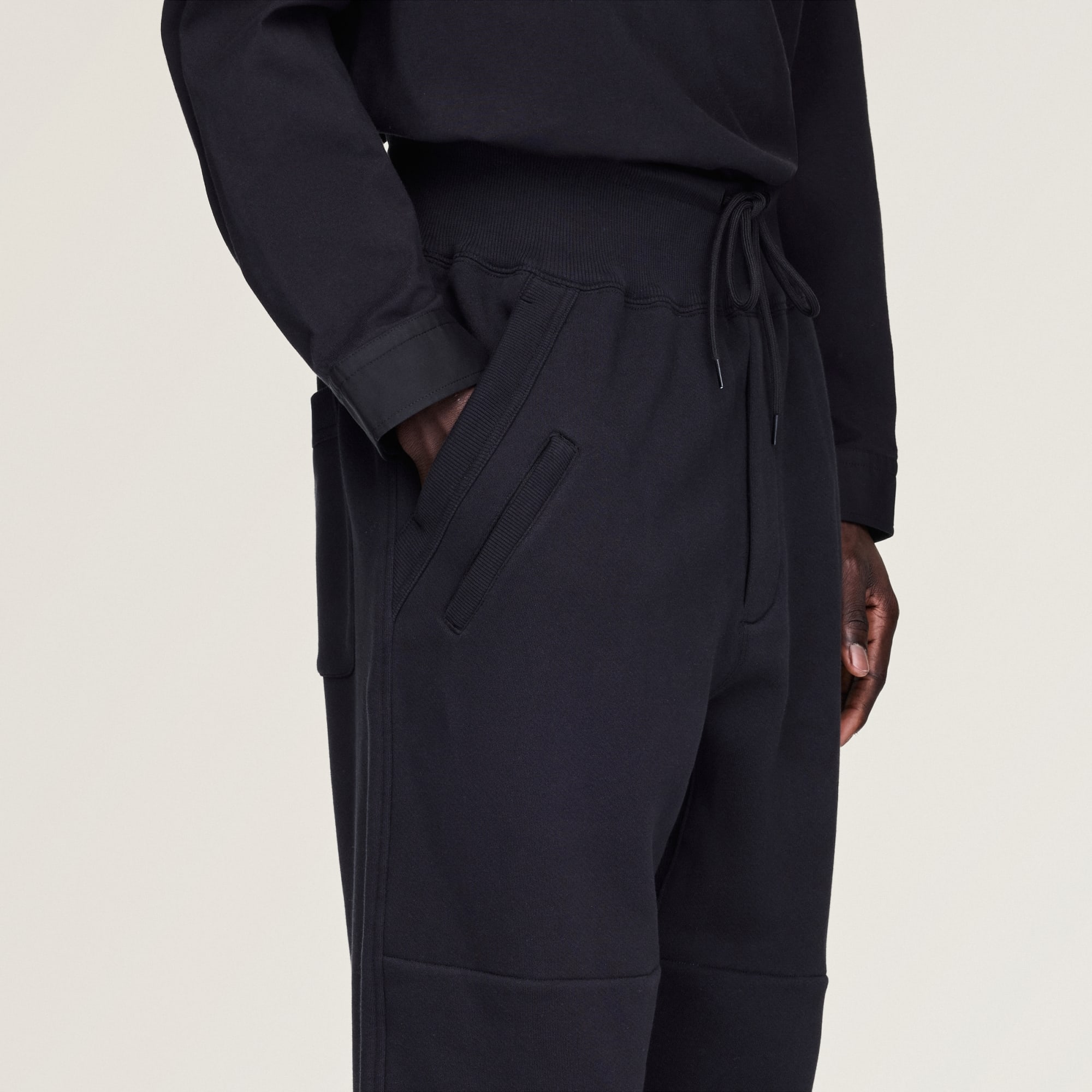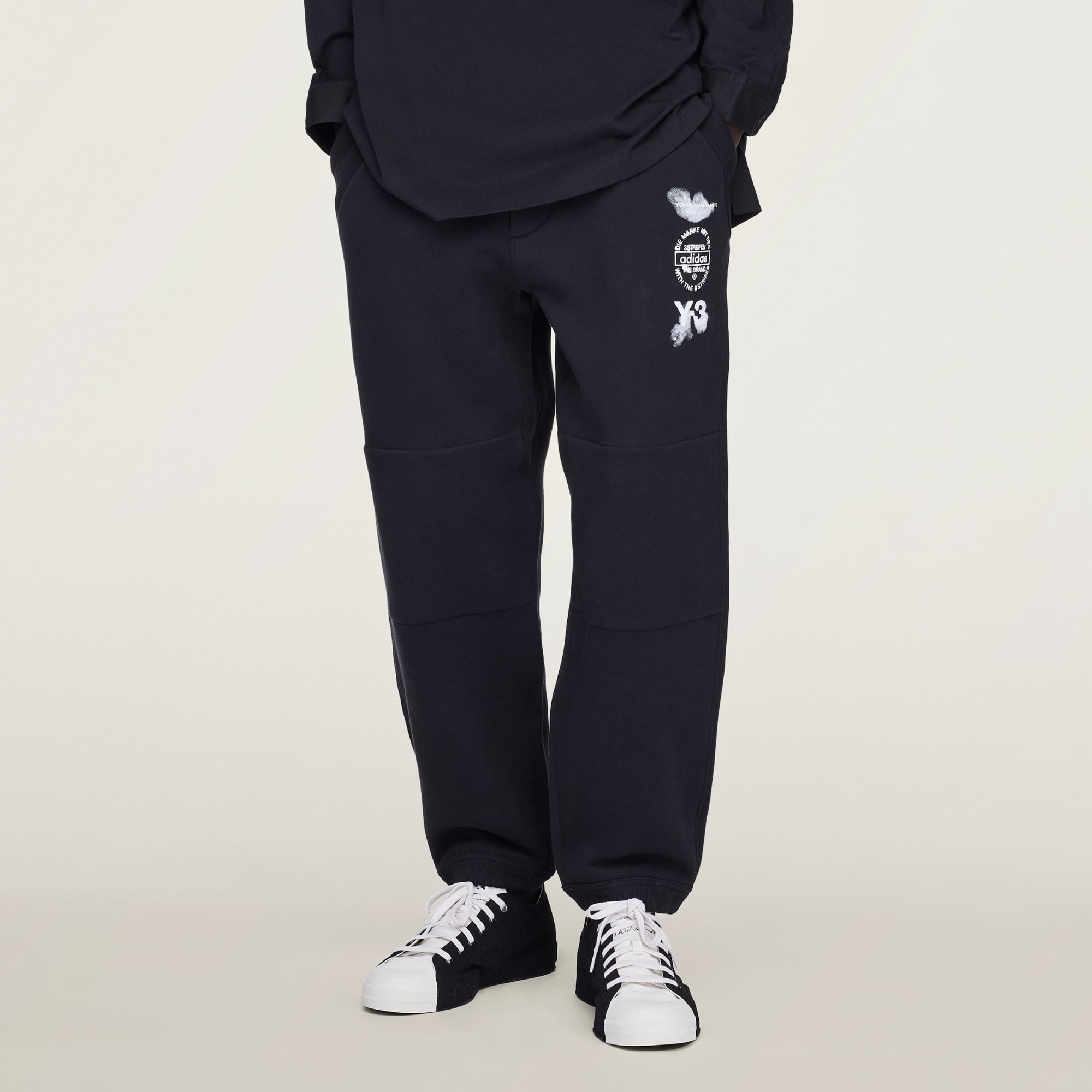 Y-3 na nowo definiuje sportową sylwetkę z perspektywy mody, czego rezultatem są spodnie dresowe z mankietami Y-3. Wykonane z bawełny i o klasycznym kroju, te spodnie są definicją minimalizmu. Elastyczne mankiety nadają kształt, a logo odzwierciedla ducha Y-3.
